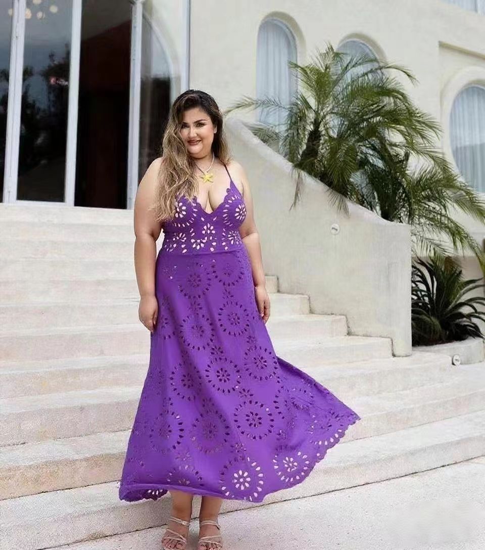 Purple Scalloped Hollow Sexy One-Piece Swimsuit&Skirt