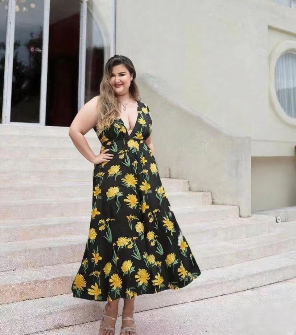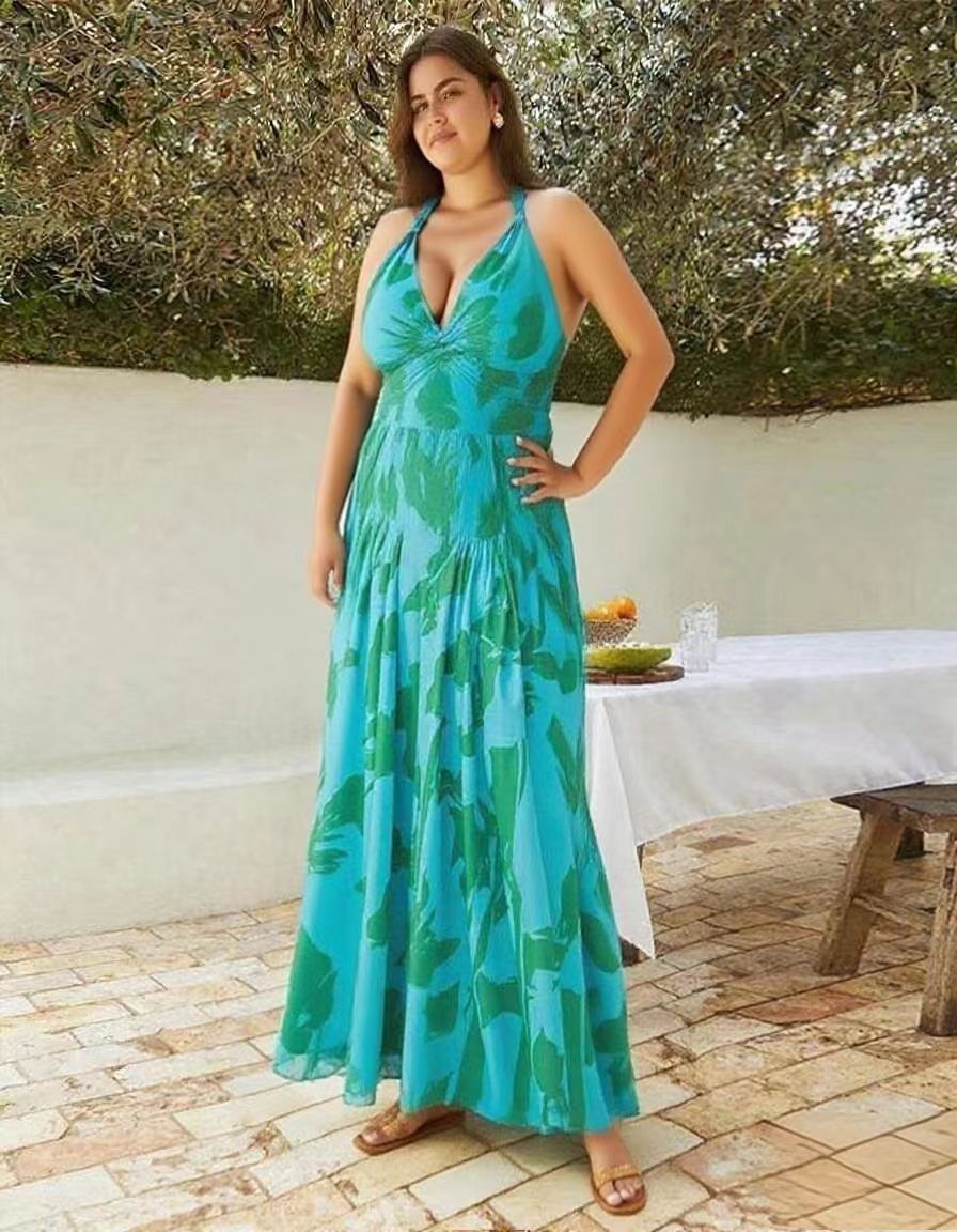 Plus Size Casual Boho Print Split Hem Maxi Dress