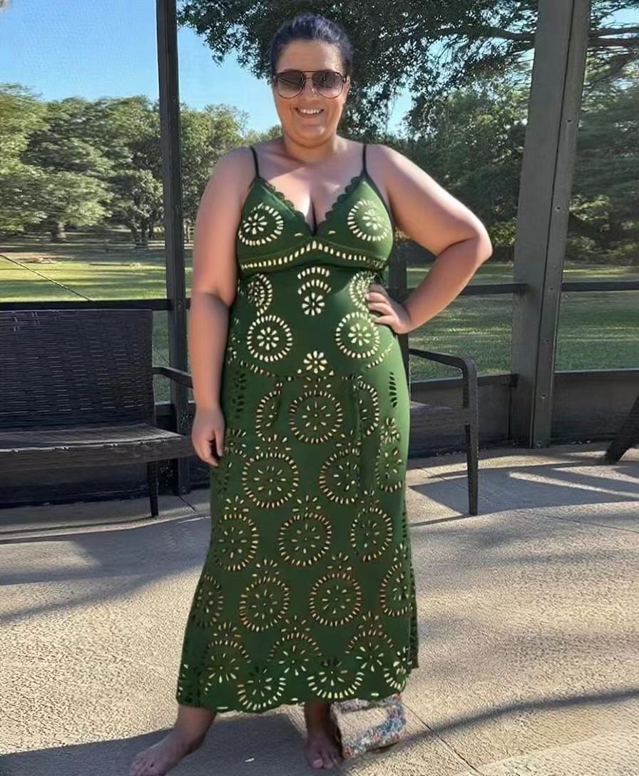 Green Scalloped Hollow Sexy One-Piece Swimsuit&Skirt
