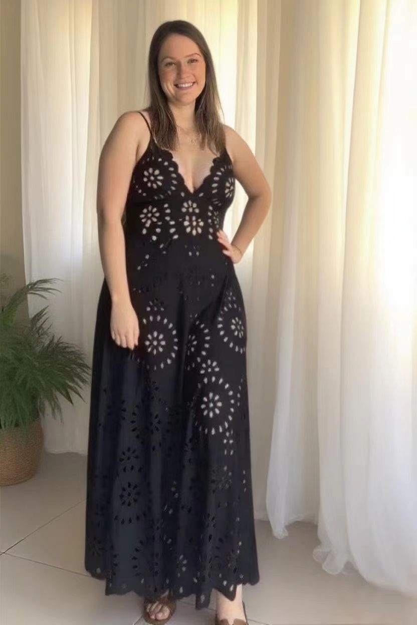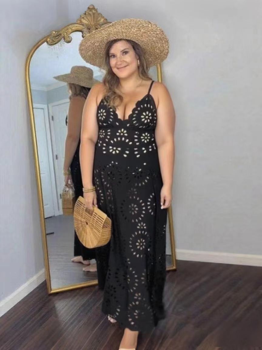 Black Scalloped Hollow Sexy One-Piece Swimsuit&Skirt