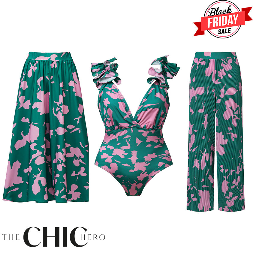 Indigo Chic Ruffled One Piece Swimsuit&Skirt&Pants