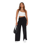 Black textured high-waisted wide-leg flowing wide-leg pants