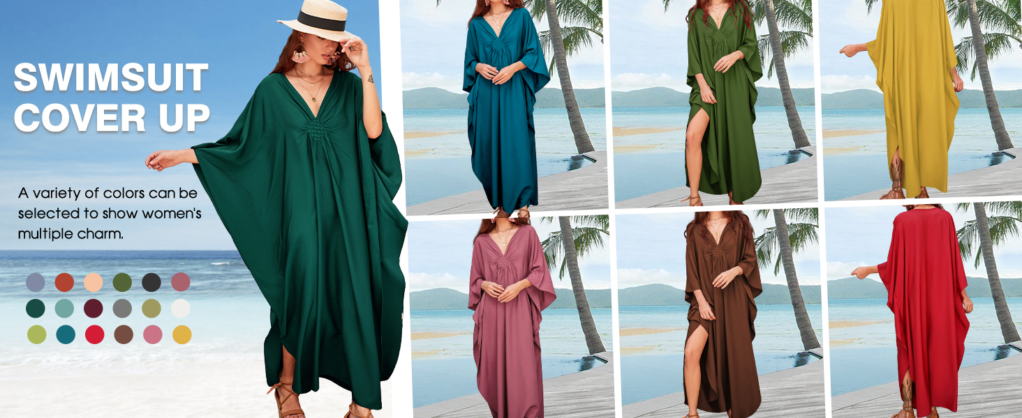 This caftan loungewear is made of soft and lightweight silky fabric, giving you a relaxed and breathable feel, ideal for hot days at the beach or pool.With a relaxed fit and flowing silhouette, the swim cover up provides enough coverage against the sun, a comfortable and loose fit for most body types.