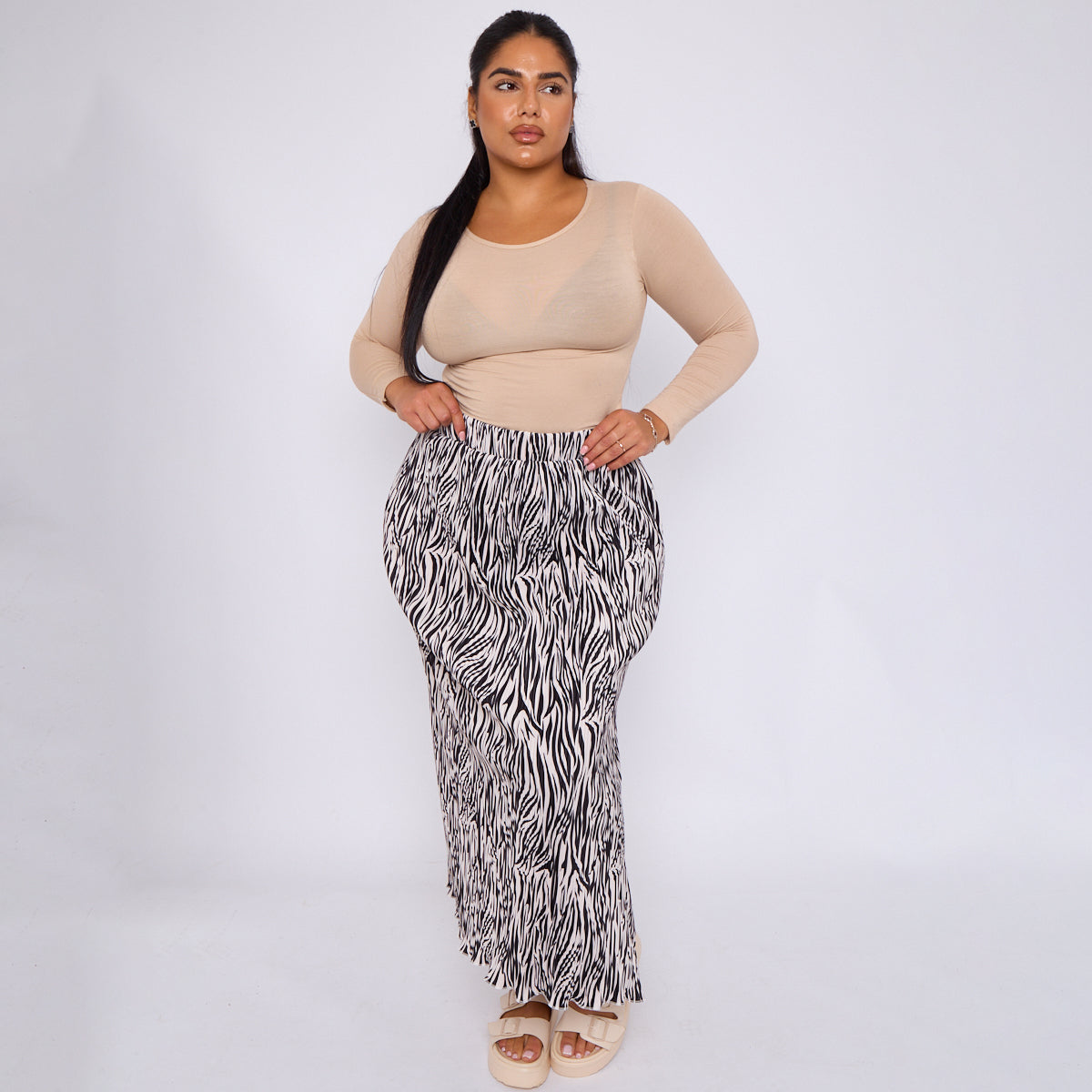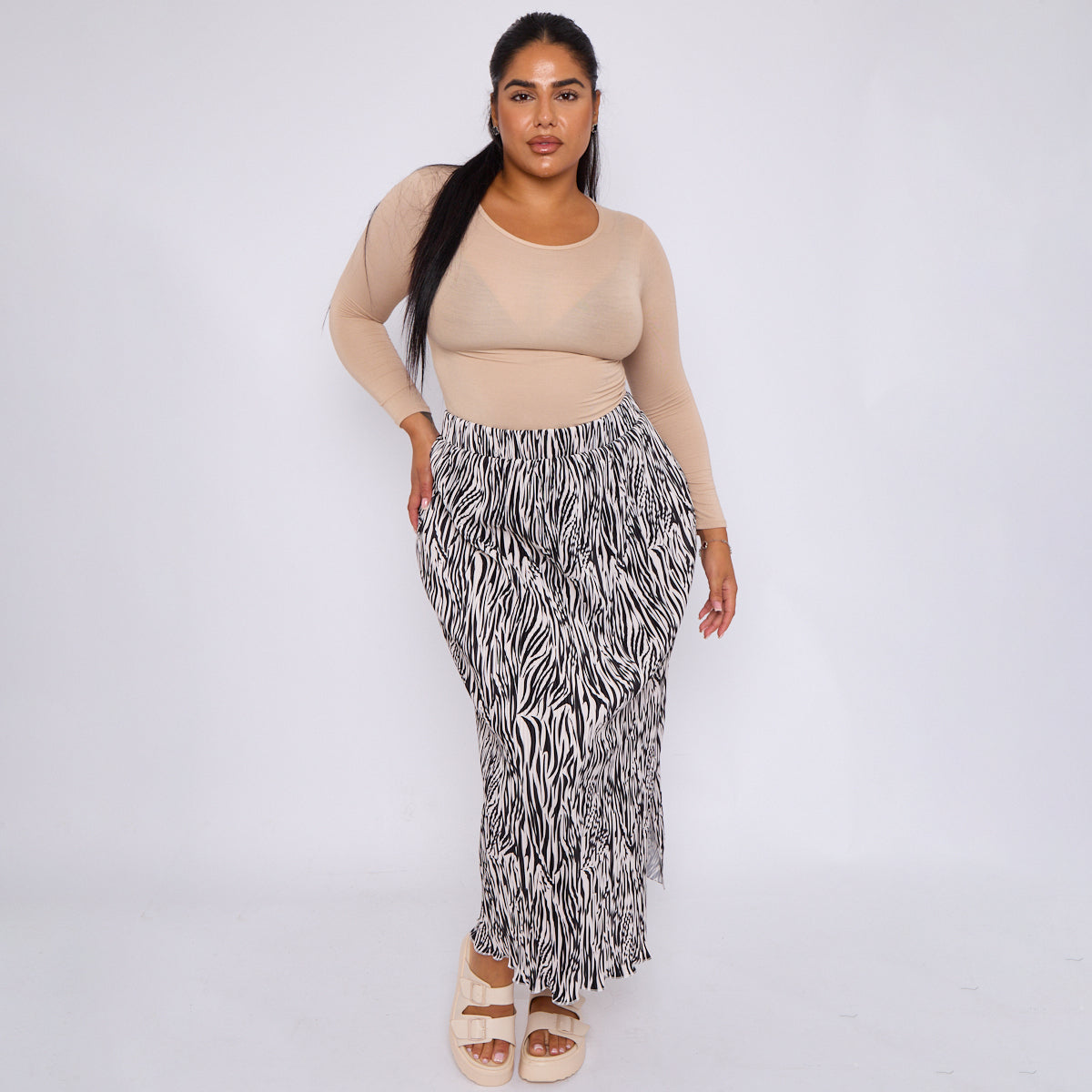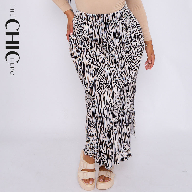 Black Zebra Abstract Print Ripple Pleated Skirt