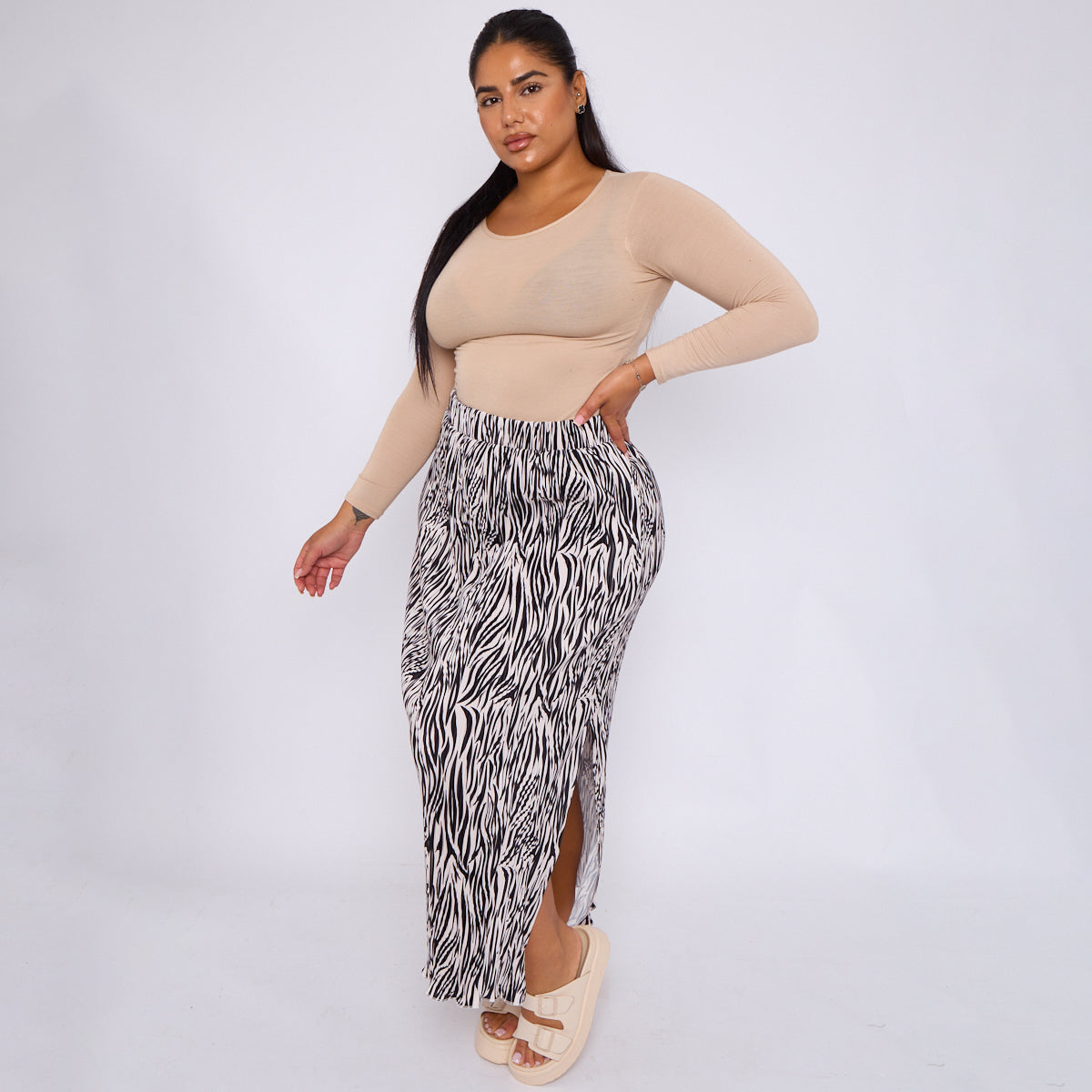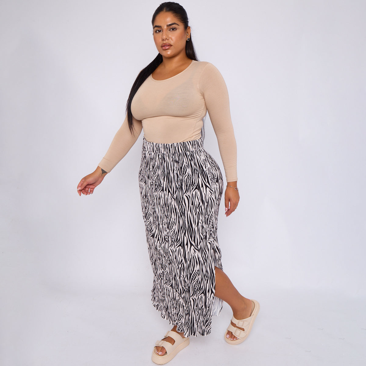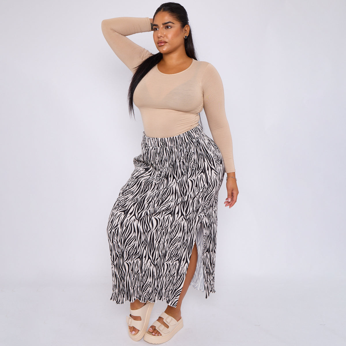 Black Zebra Abstract Print Ripple Pleated Skirt