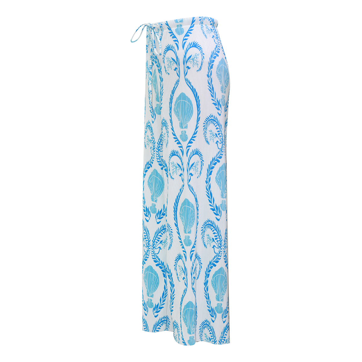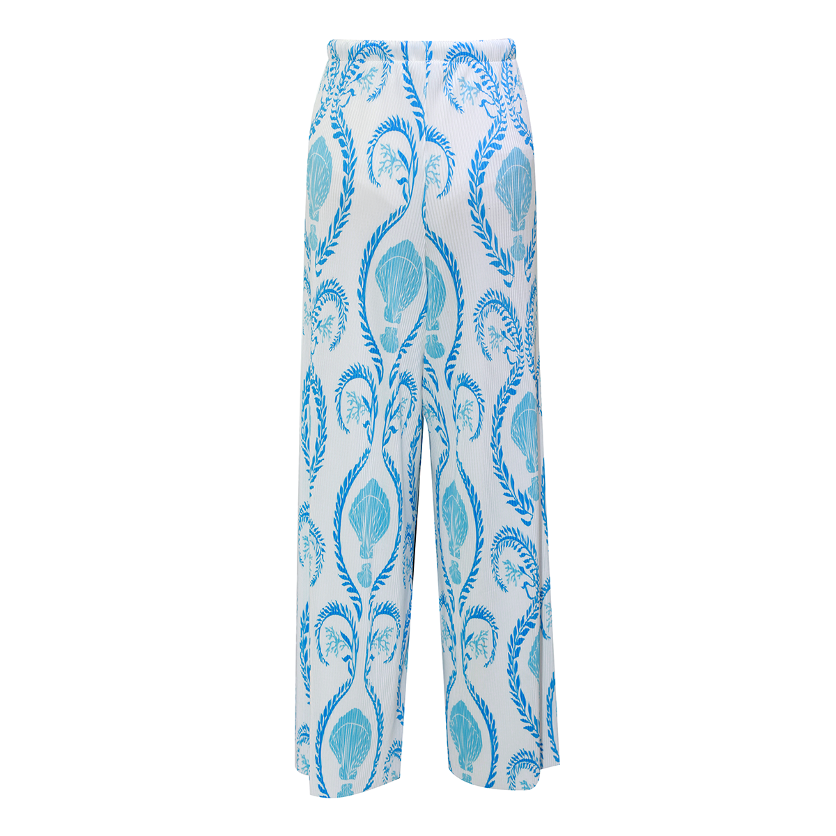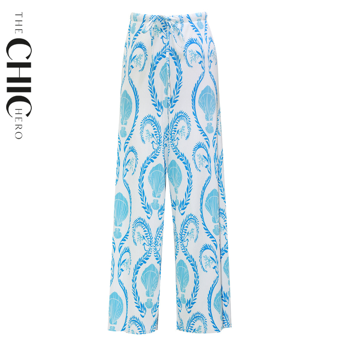 Blue Shell Motifs Prints Nautical Drawstring Trousers Pleated Pants