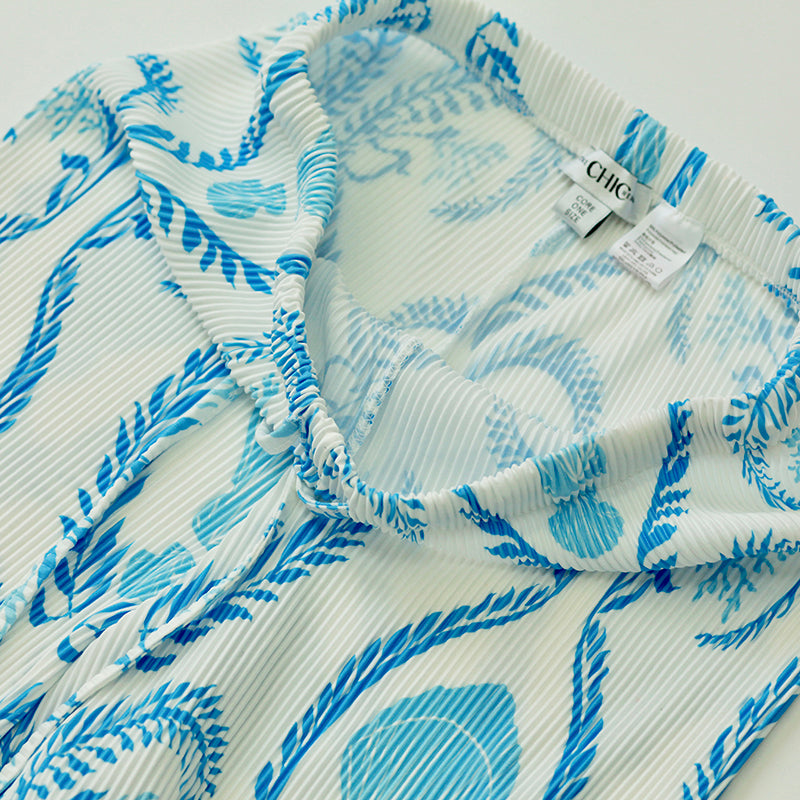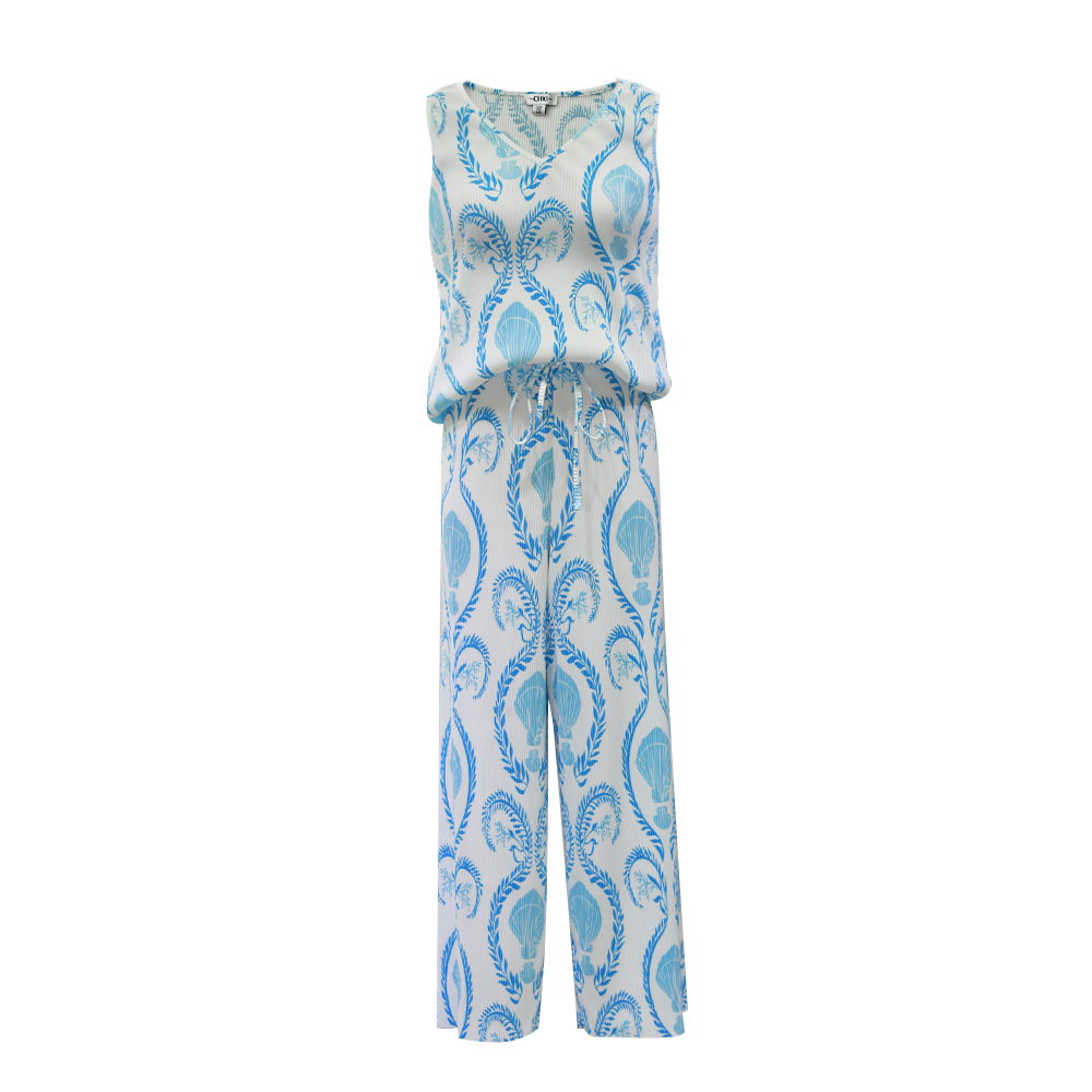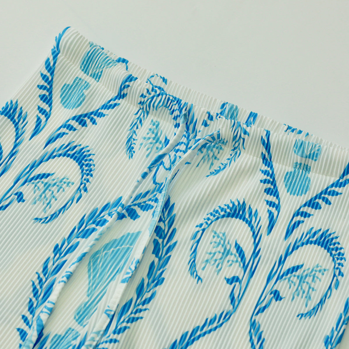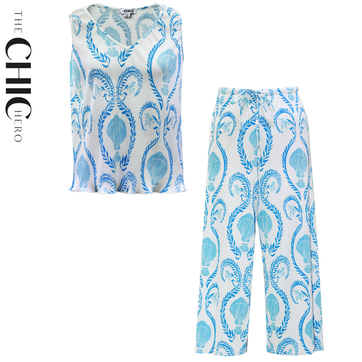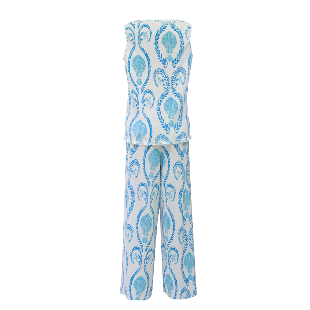 Blue Shell Motifs Prints Nautical V-Neck Vest Top & Pleated Pants