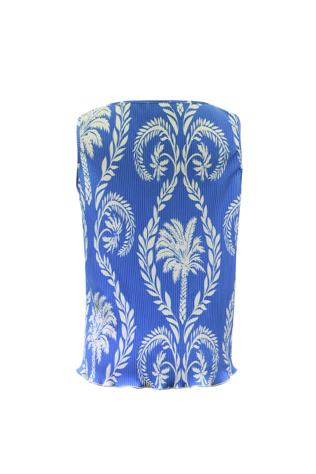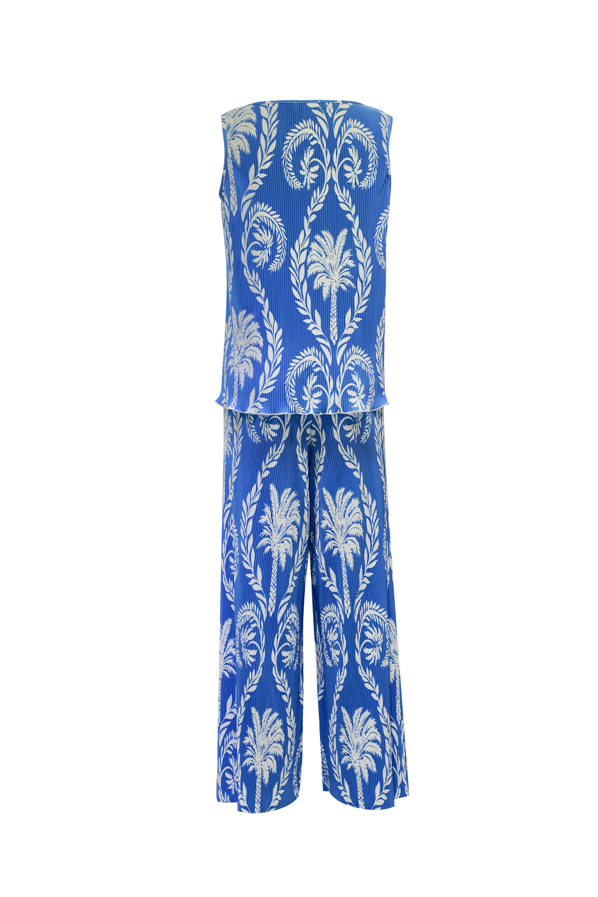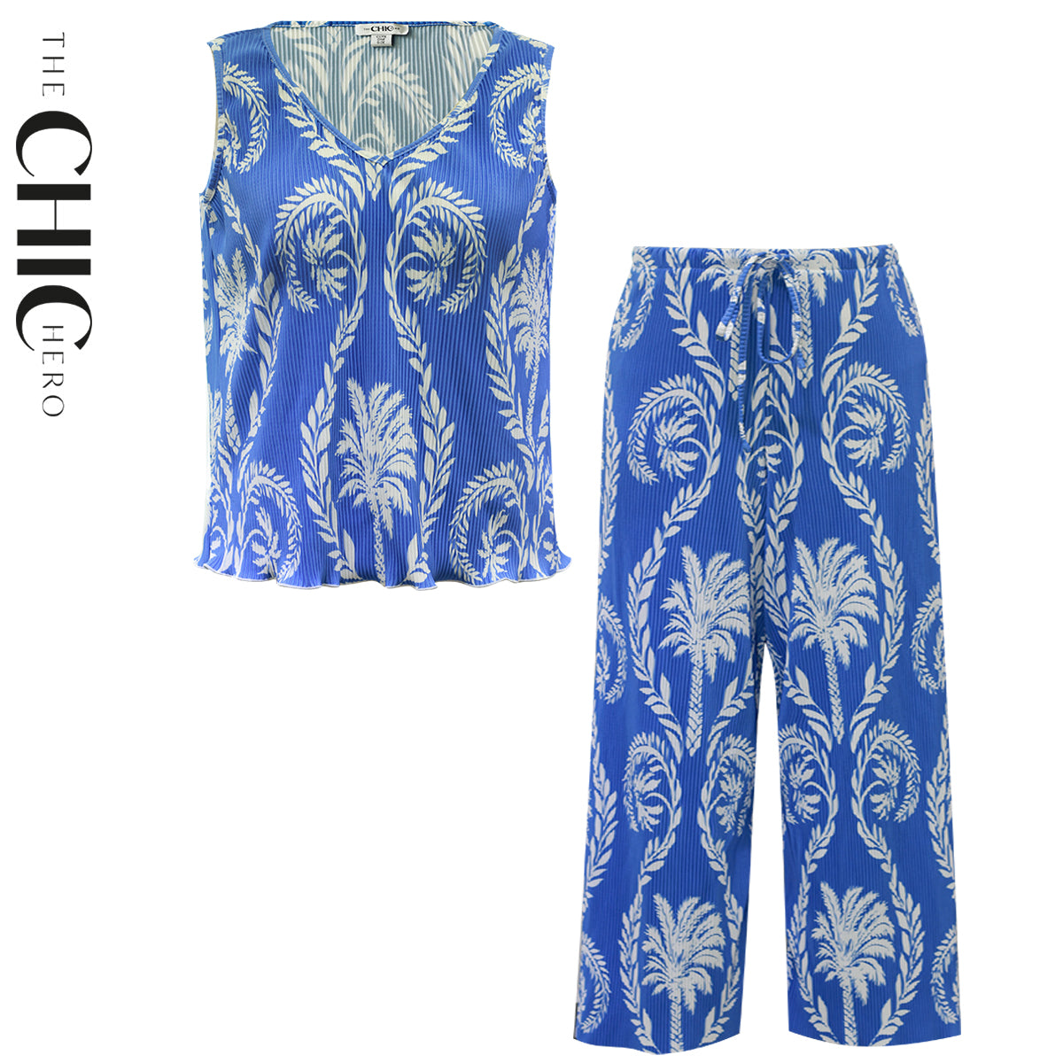 Blue Tropical Palm Leaf Patterns Vest Top & Pleated Pants