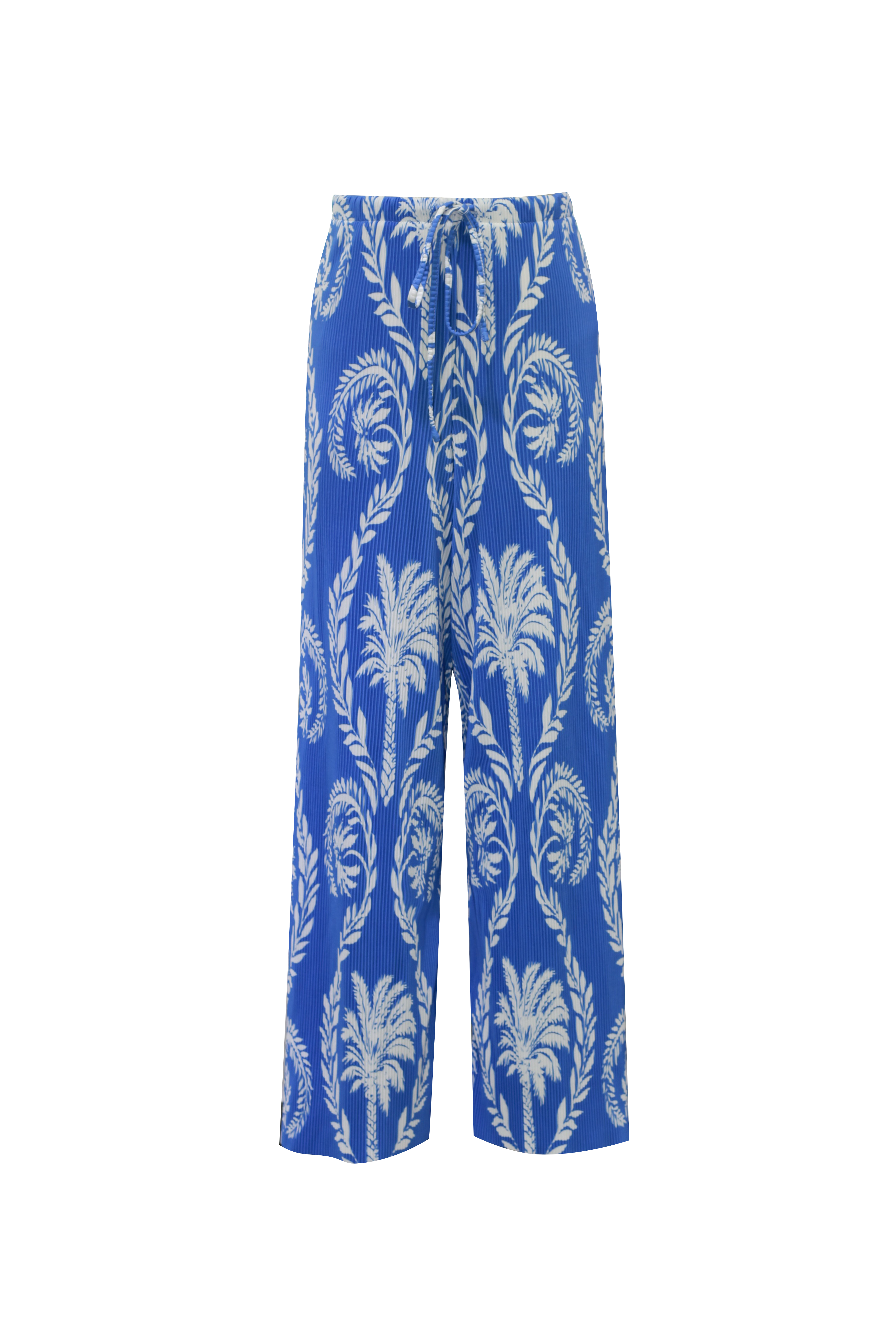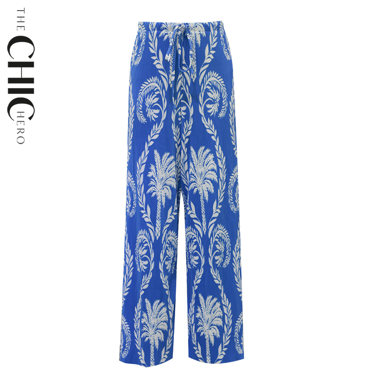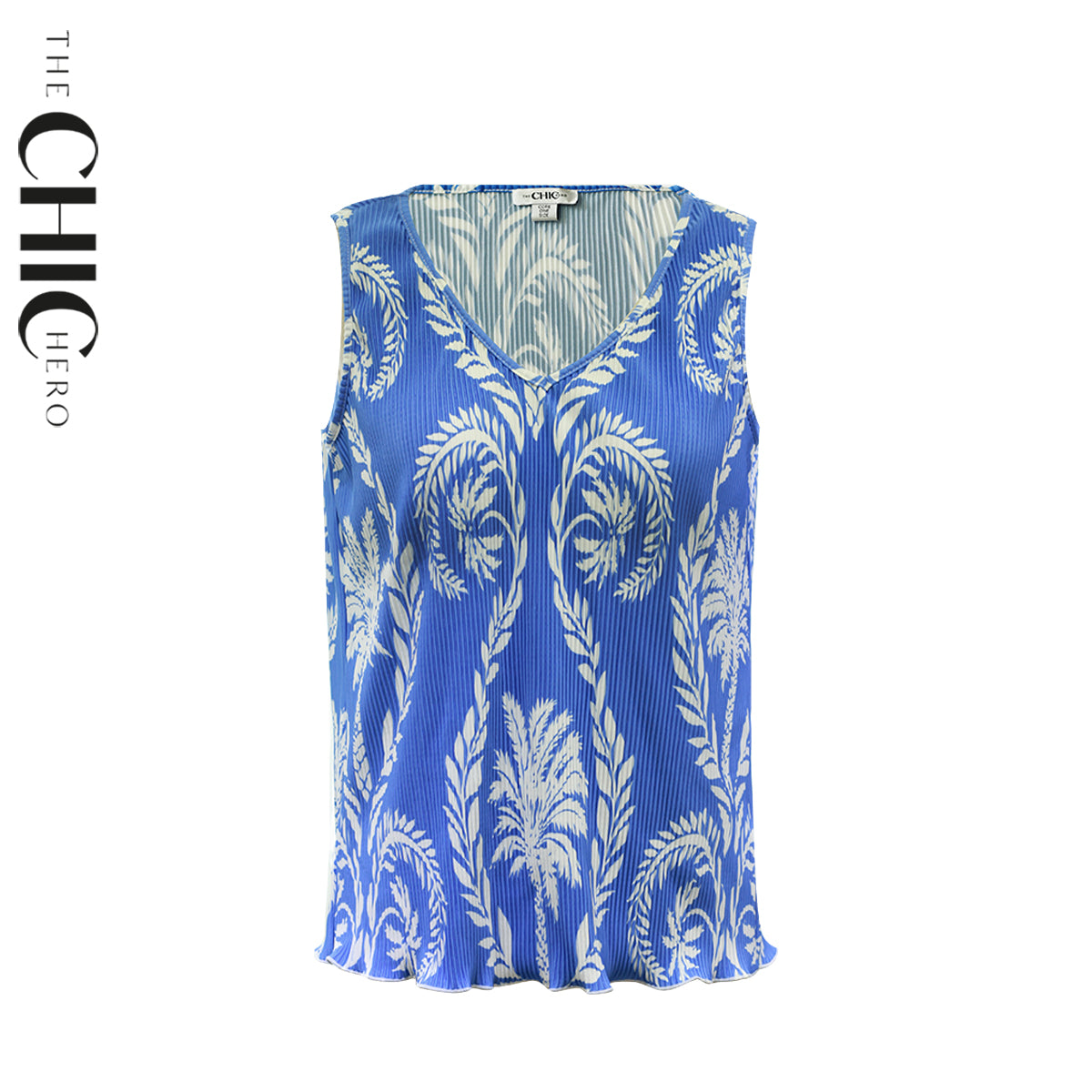 Blue Tropical Palm Leaf Patterns Vest Top & Pleated Pants