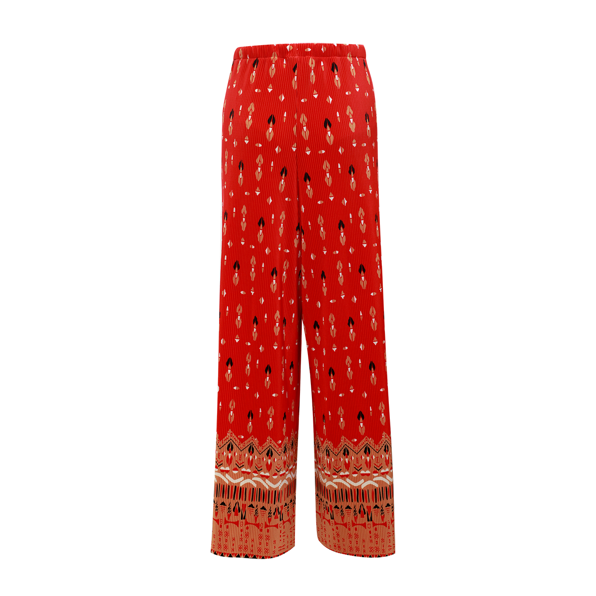 Bohemian Tribal Print Drawstring Trousers Pleated Pants