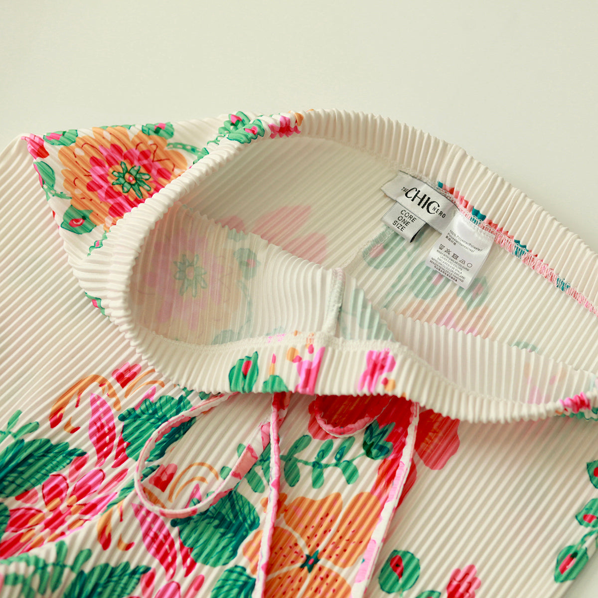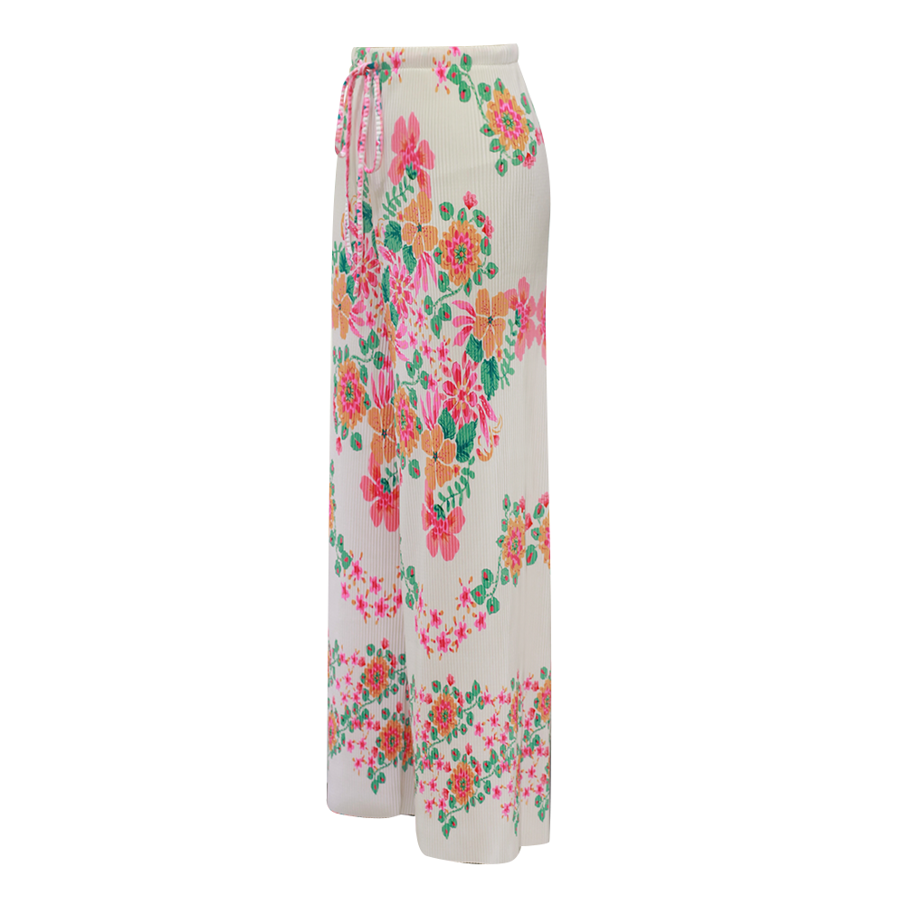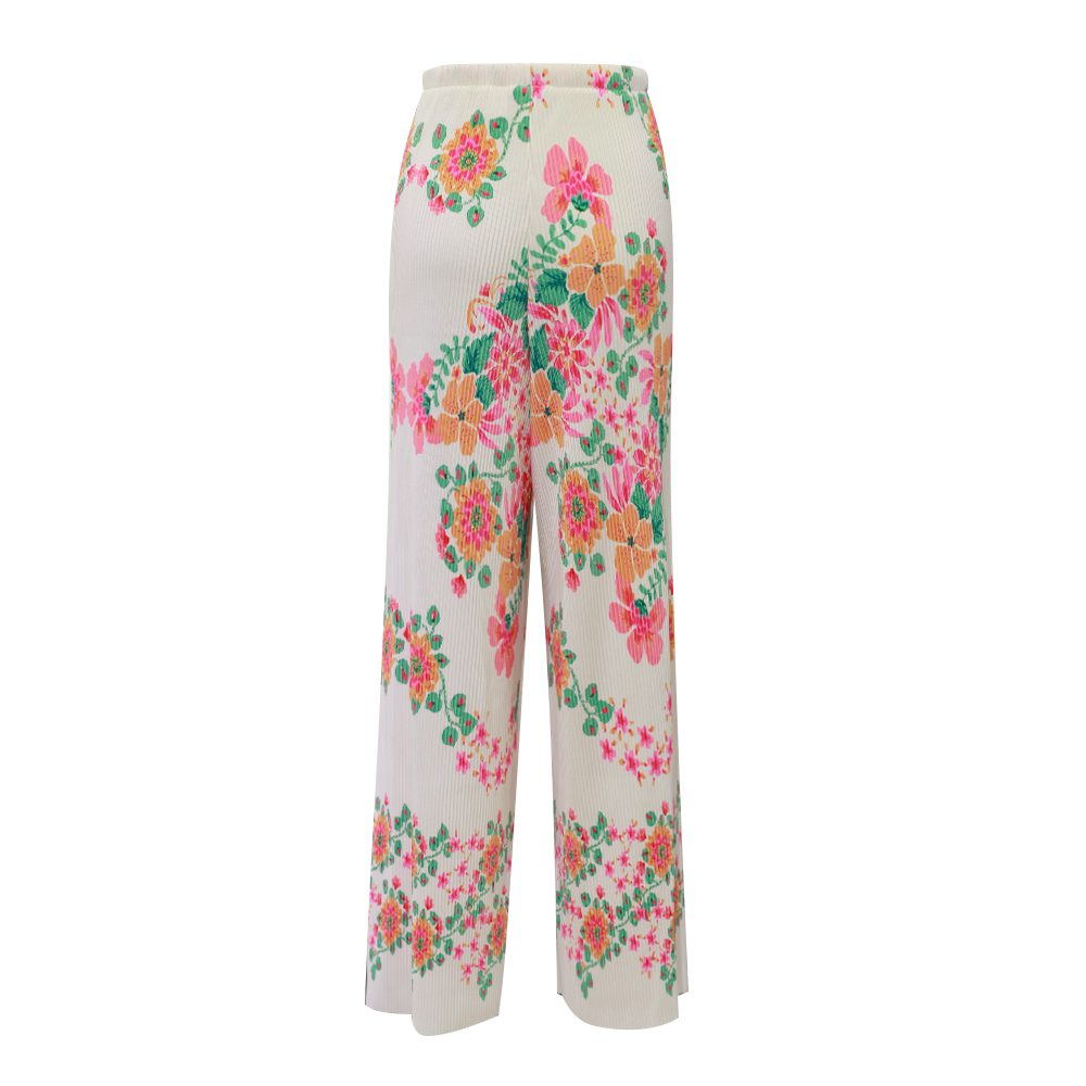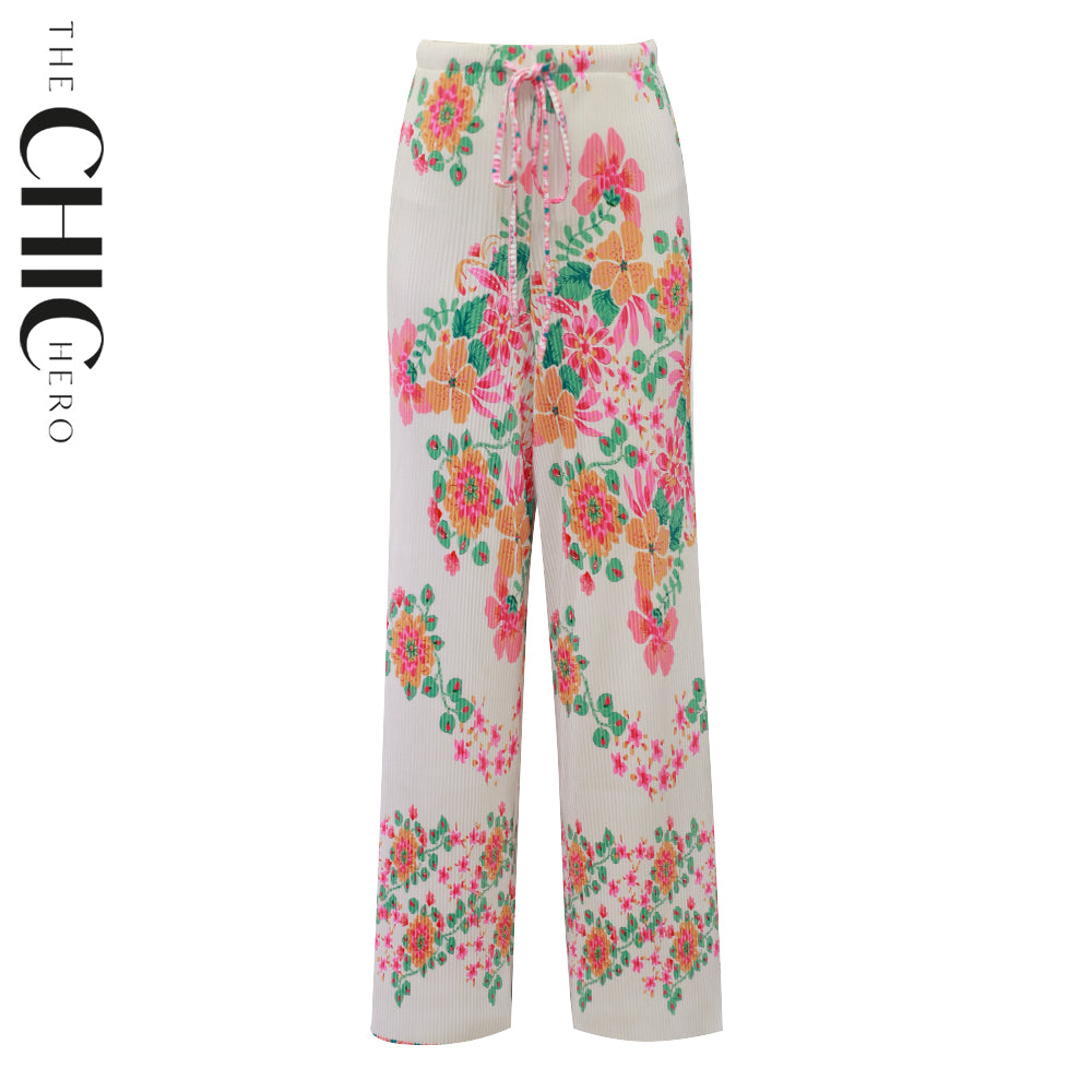 Colorful Floral Patterns Drawstring Trousers Pleated Pants