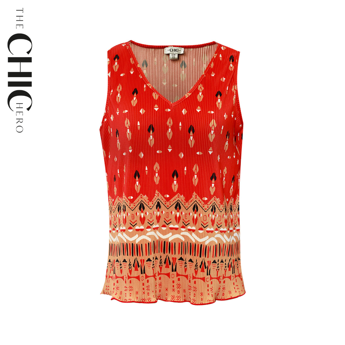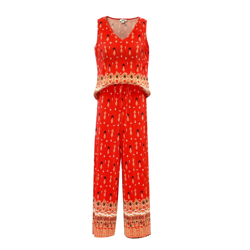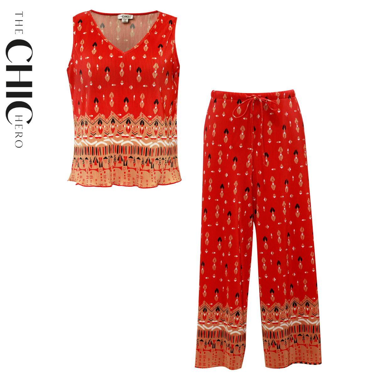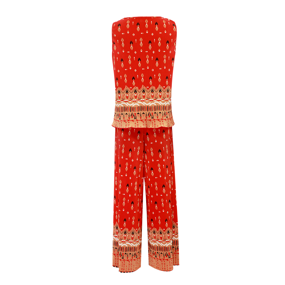 Bohemian Tribal Print V-Neck Vest Top & Pleated Pants