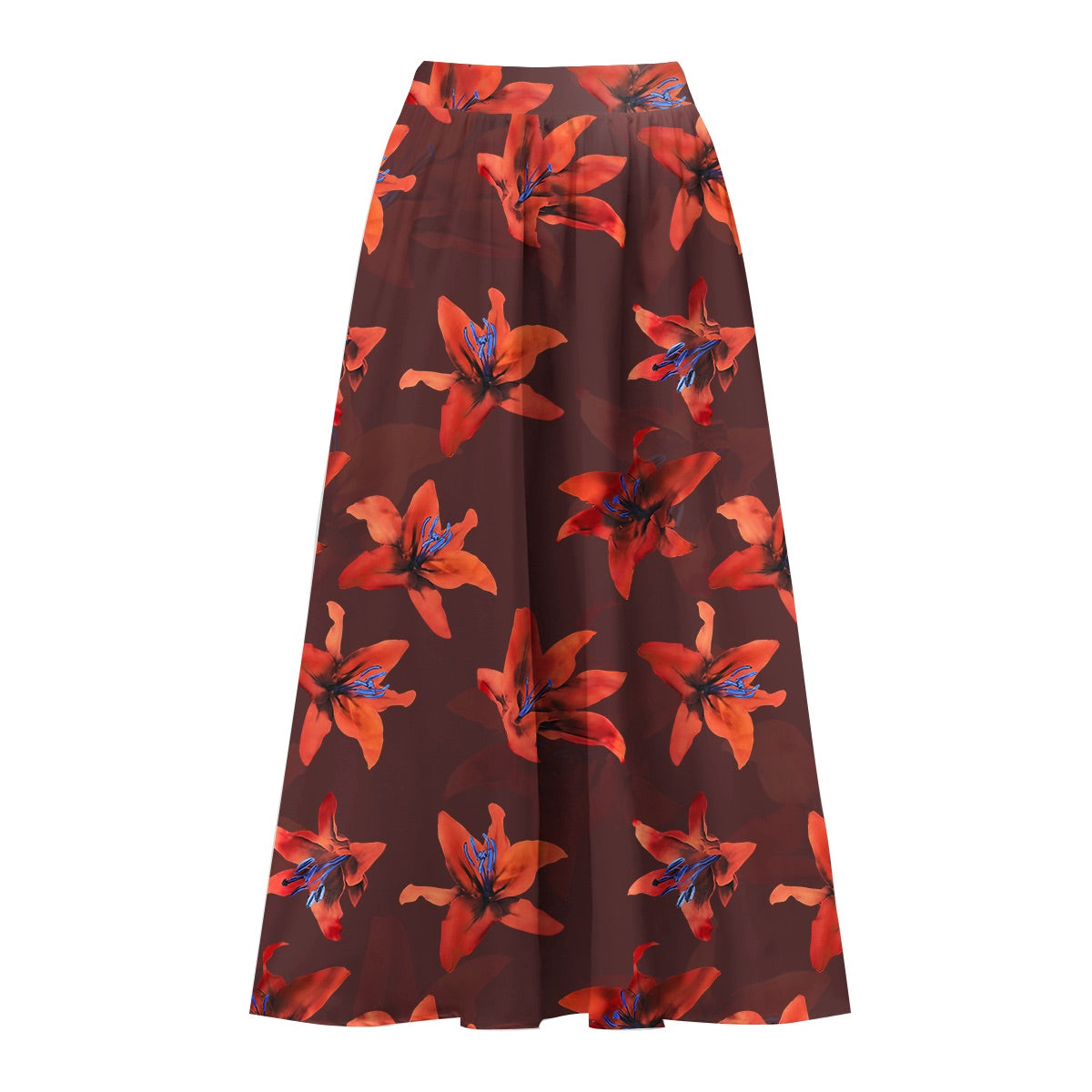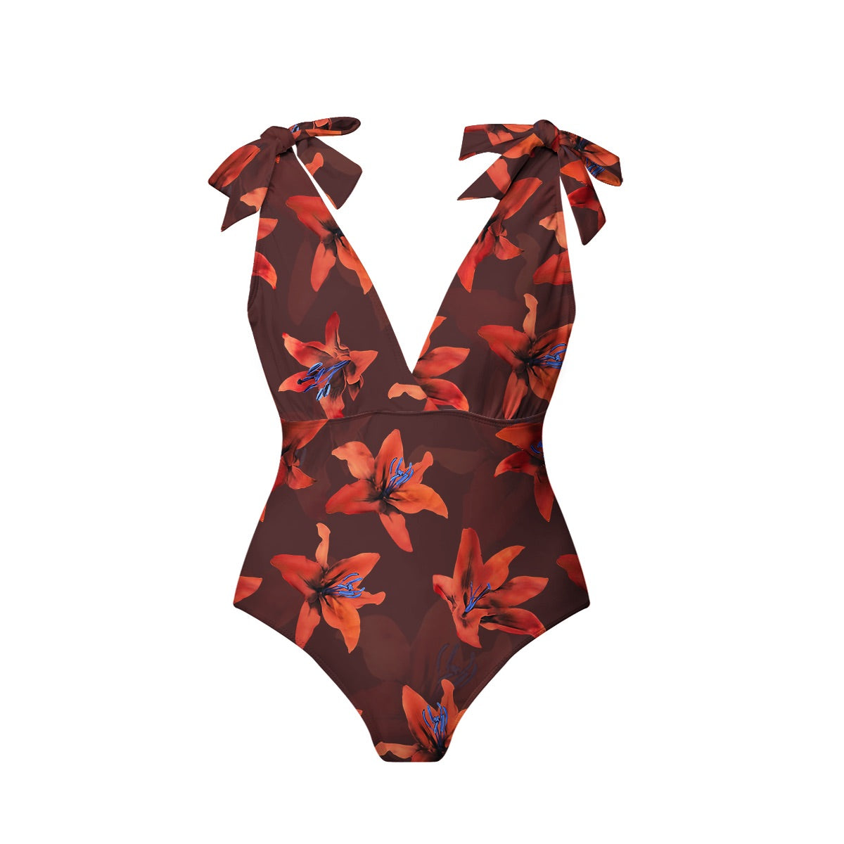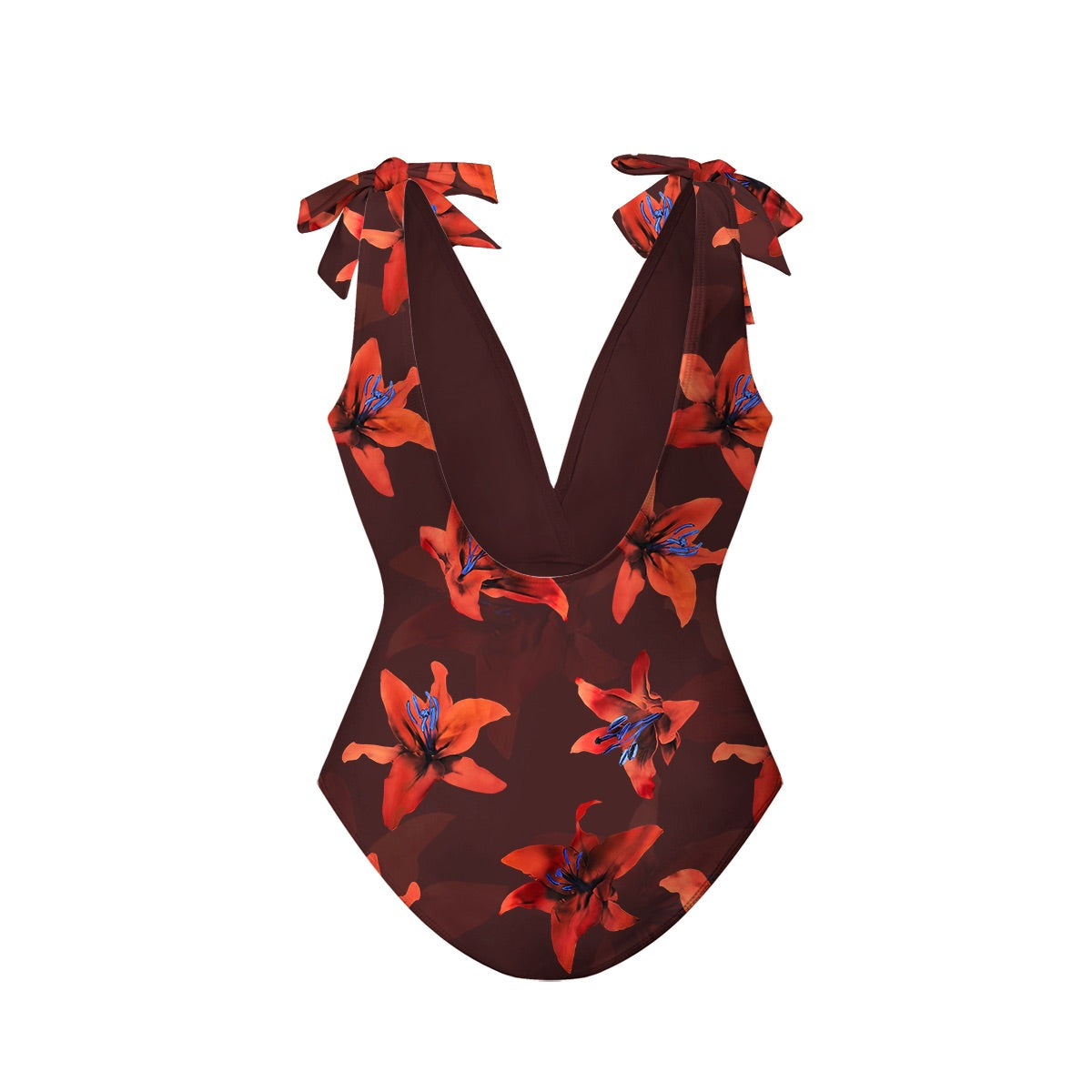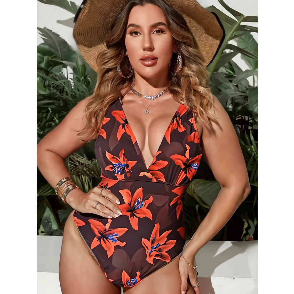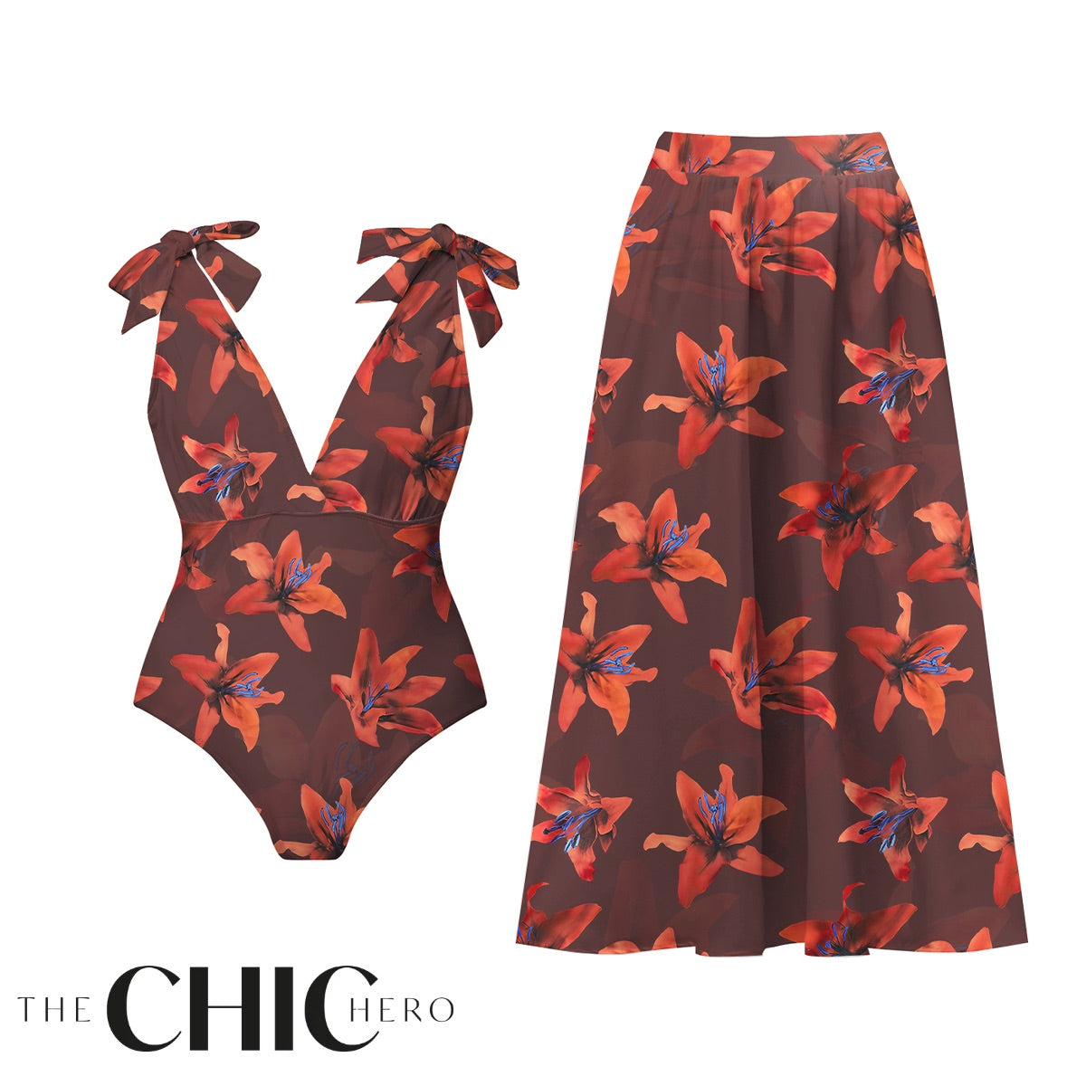 Red Lily Floral Patterns One-Piece Swimsuit&Skirt