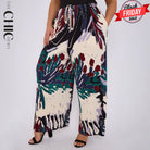 Red Rose Flower Abstract Print Palazzo Pleated Pants With Pockets