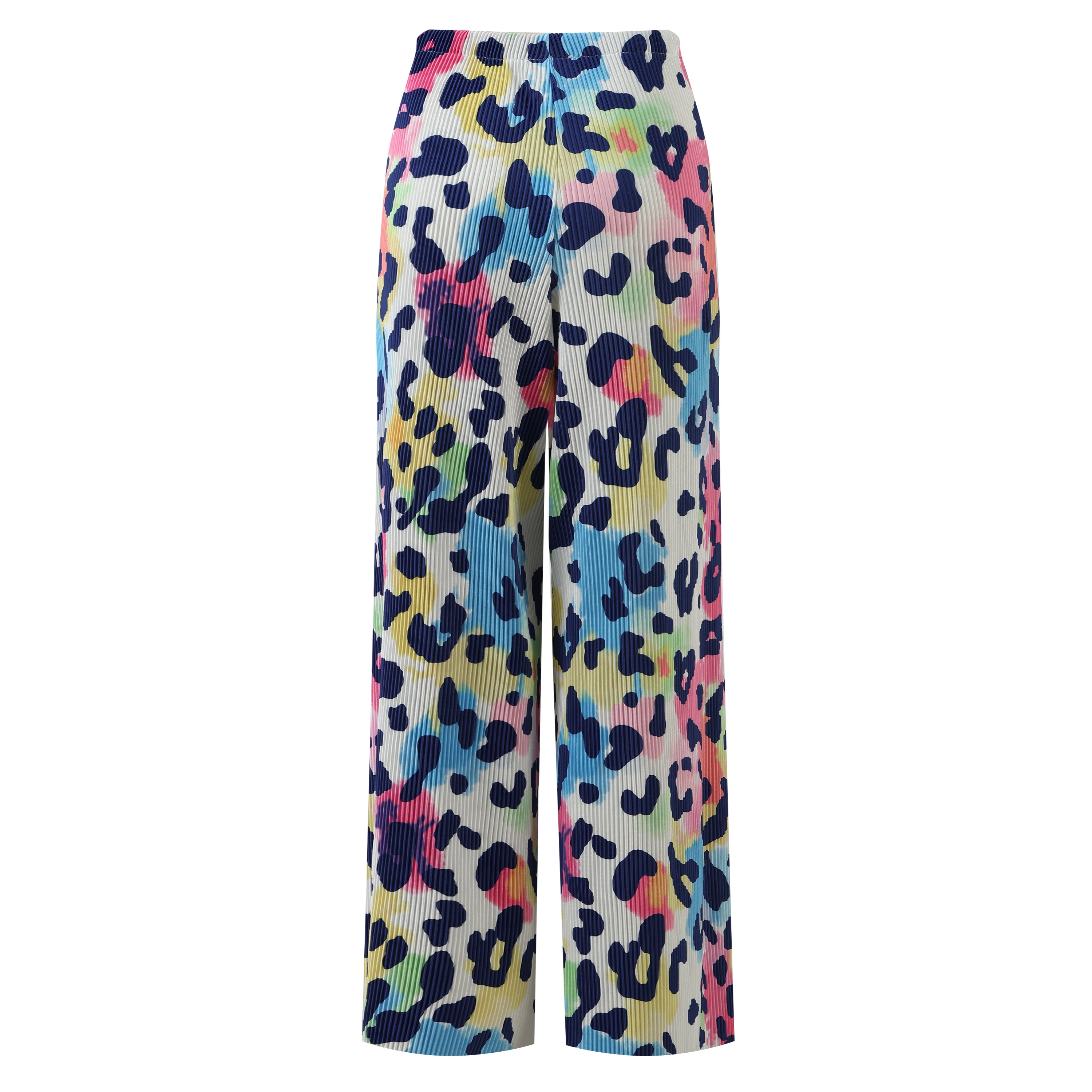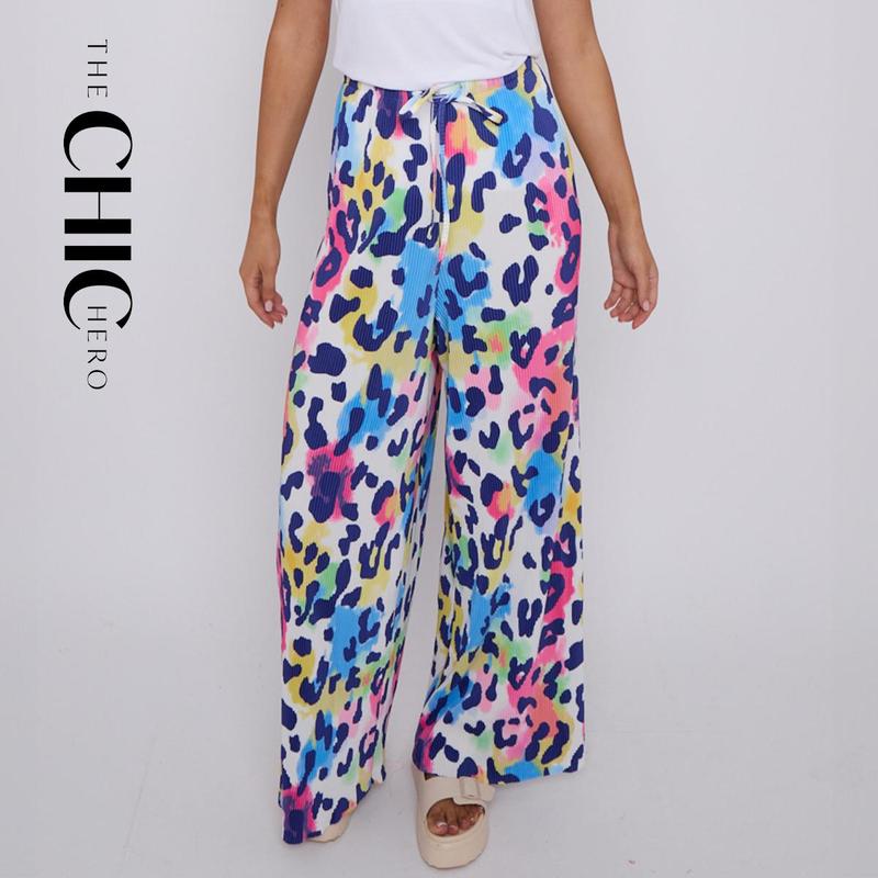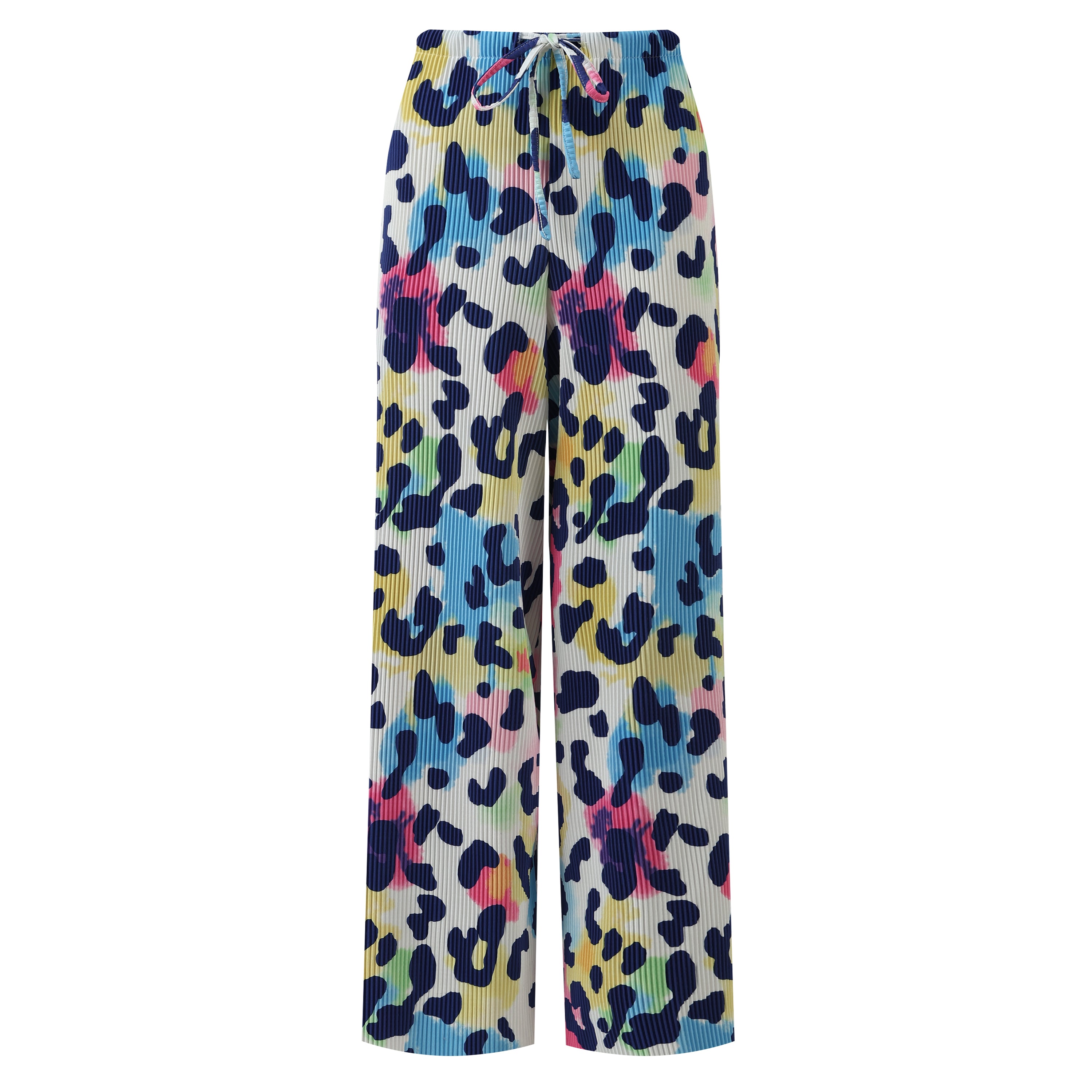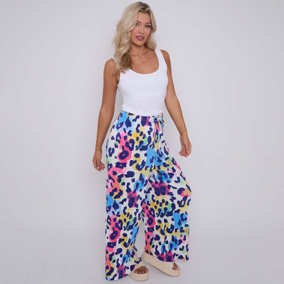 Colorful Leopard Print Abstract Print Wide-Leg Drawstring Palazzo Pleated Pants