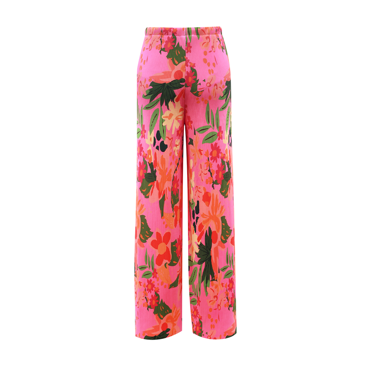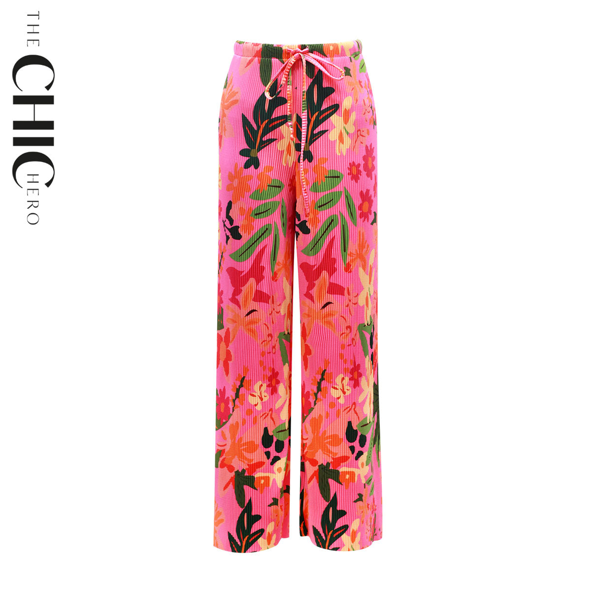 Colorful Floral Sleeveless Tropical Pattern Drawstring Trousers Pleated Pants
