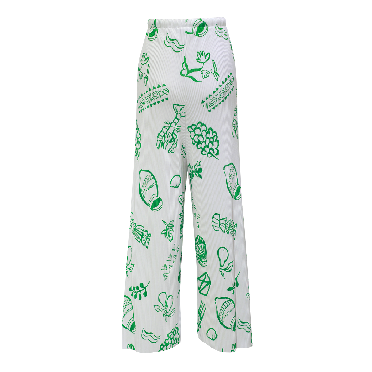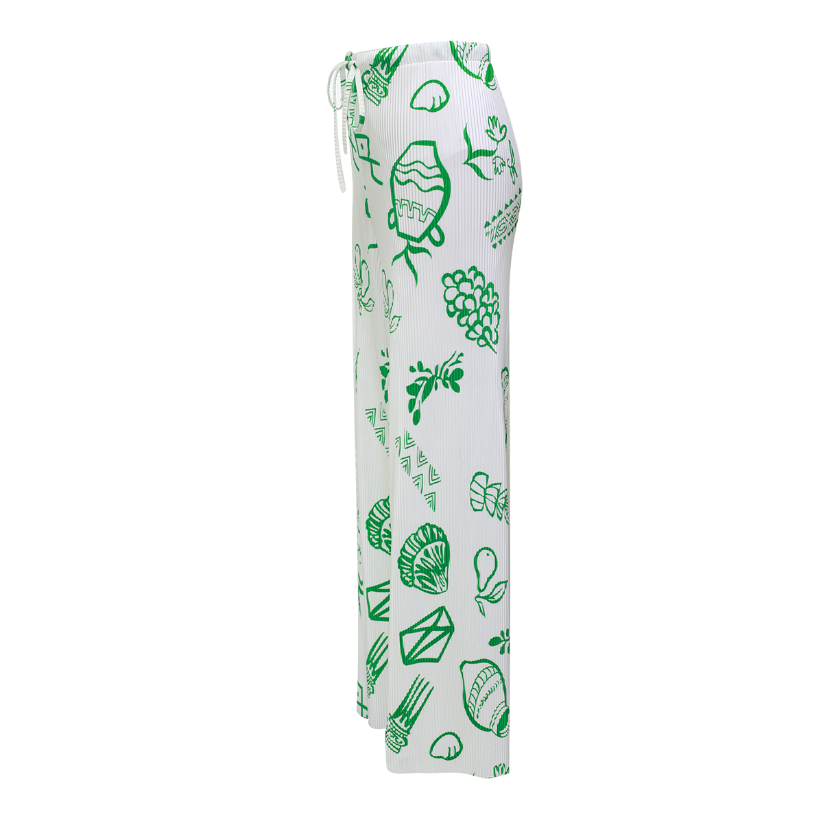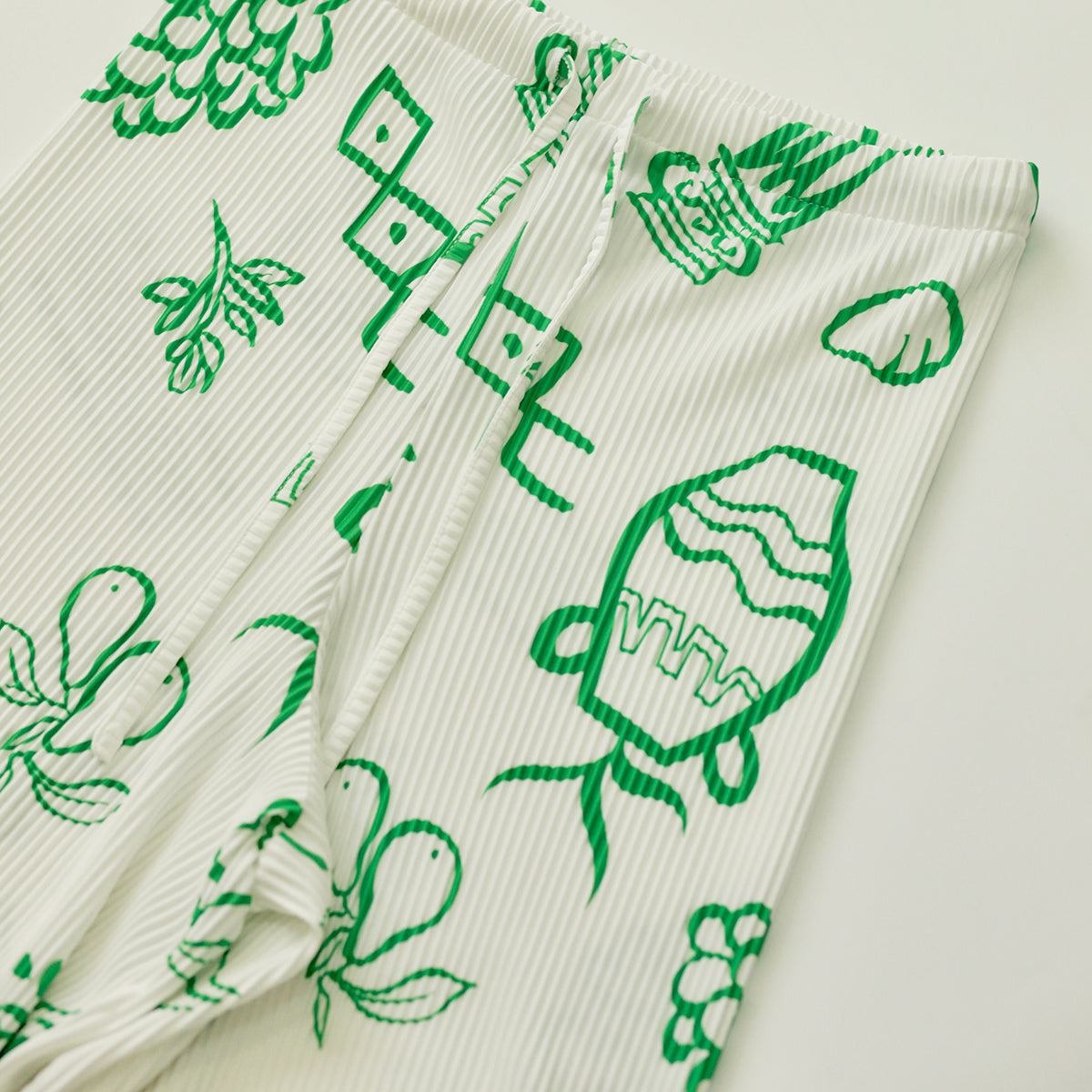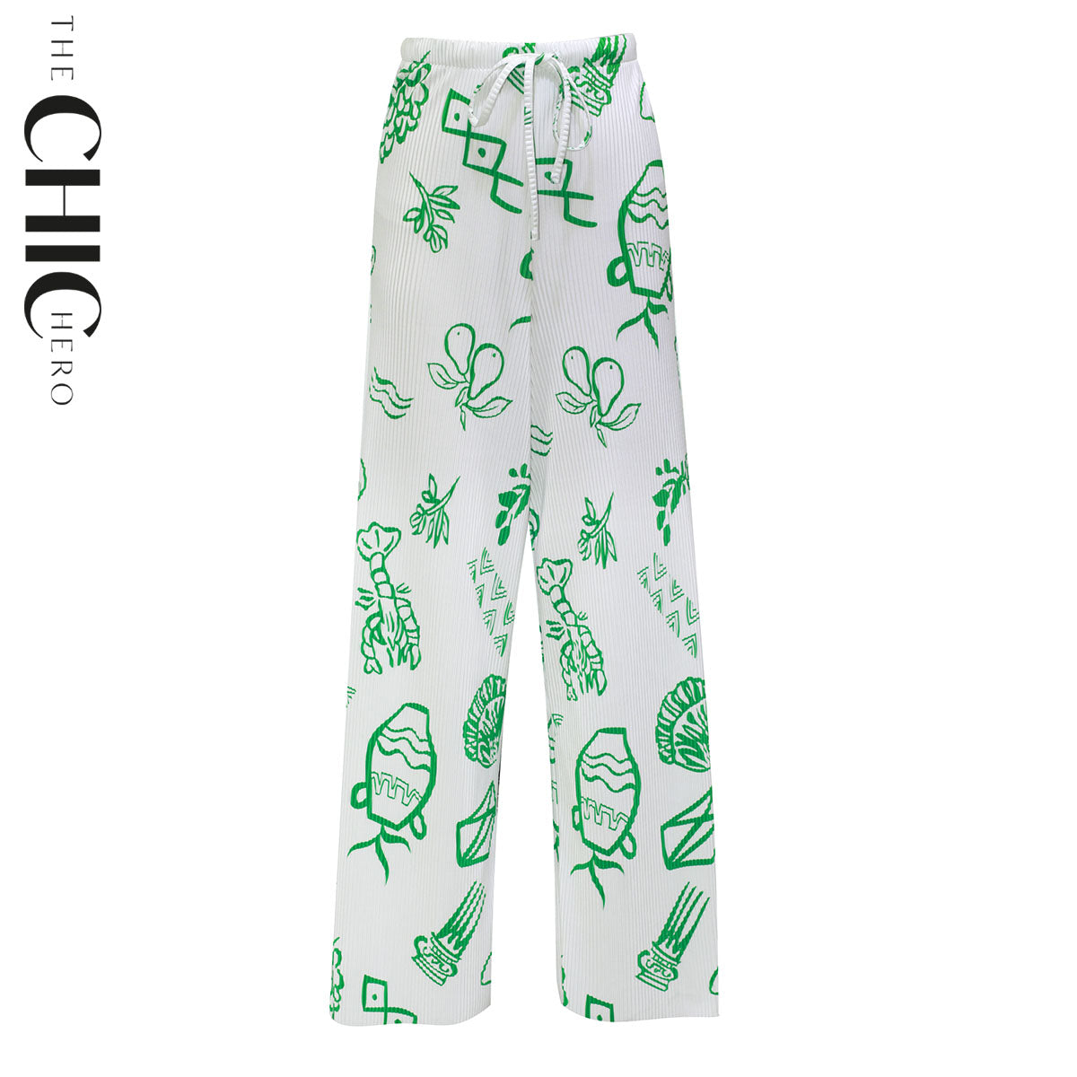 Green Whimsical Illustrated Print Drawstring Trousers Pleated Pants