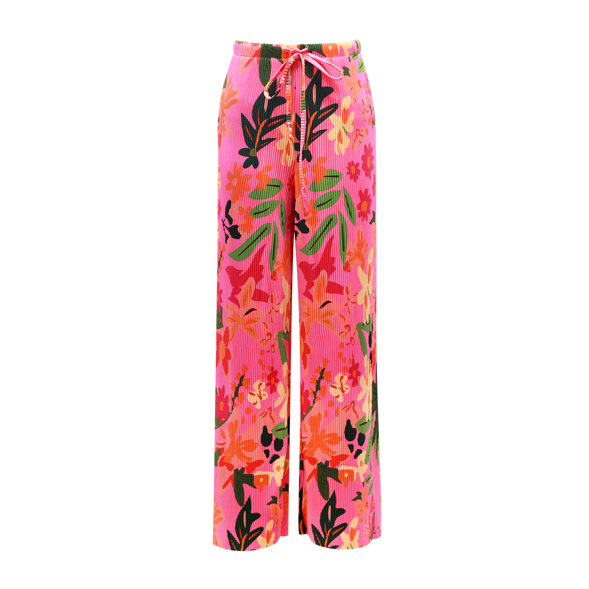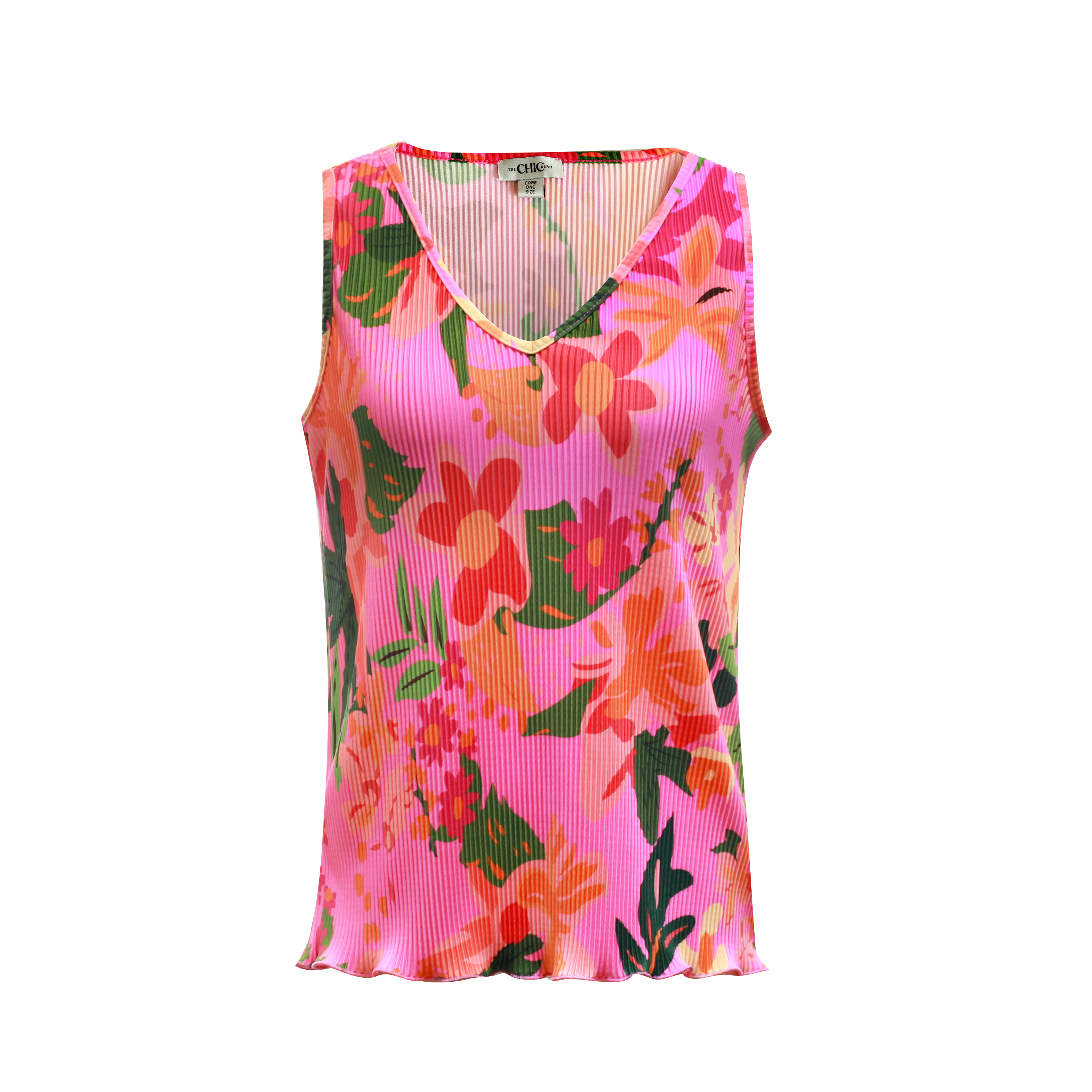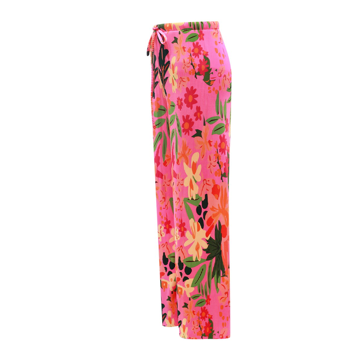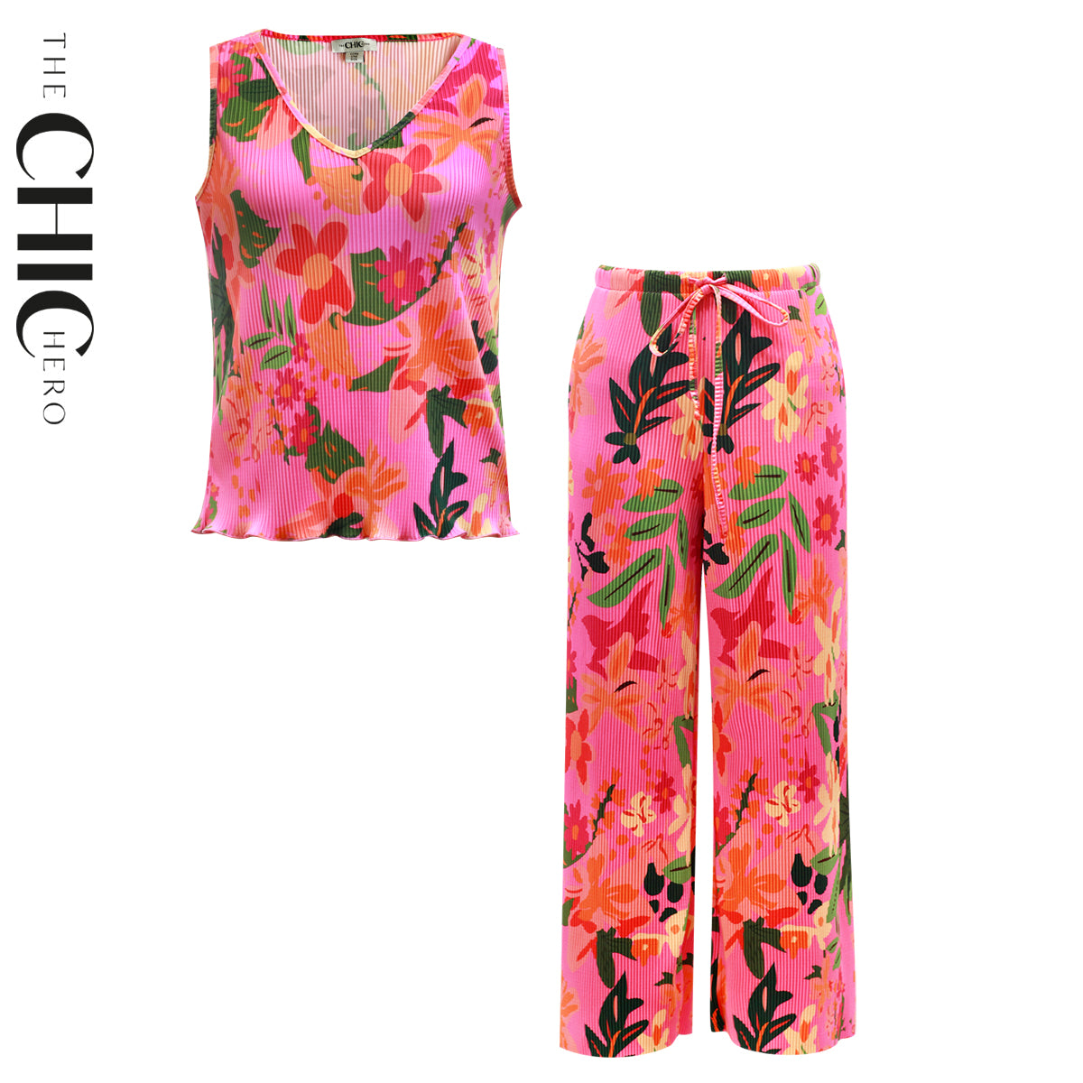 Colorful Floral Sleeveless Tropical Pattern V-Neck Vest Top & Pleated Pants