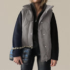 Versatile and stylish, this long puffer vest pairs effortlessly with sweaters, slim pants, and casual shoes for a relaxed look, or with sweatshirts, jeans, and sneakers for a trendy street style.