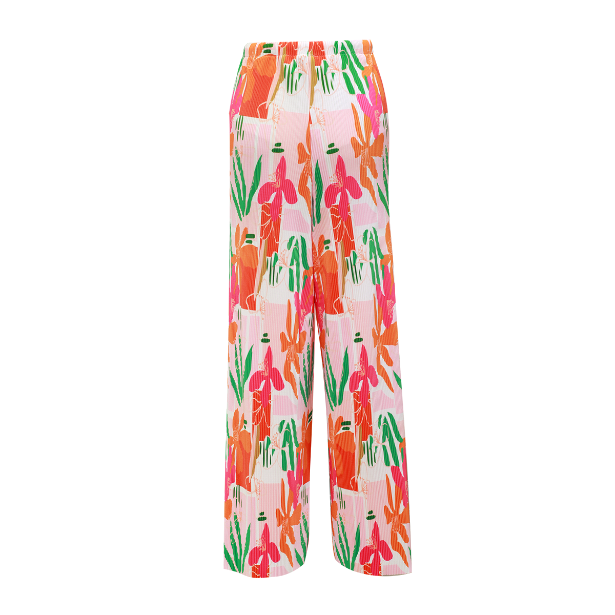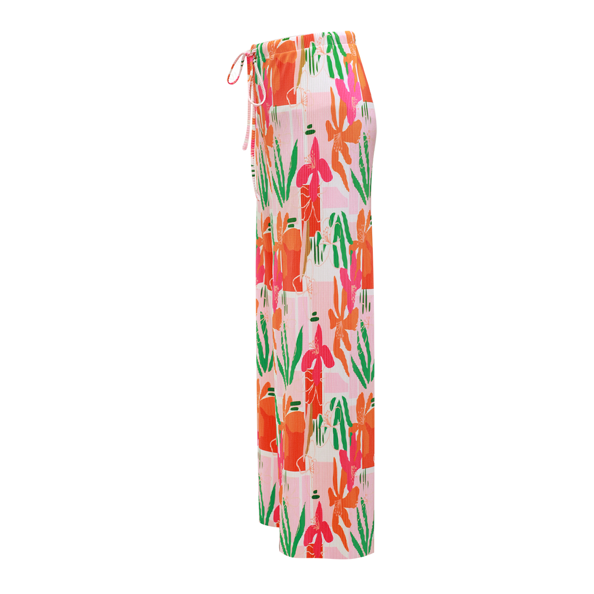 Featuring Tropical Floral Design Drawstring Trousers Pleated Pants