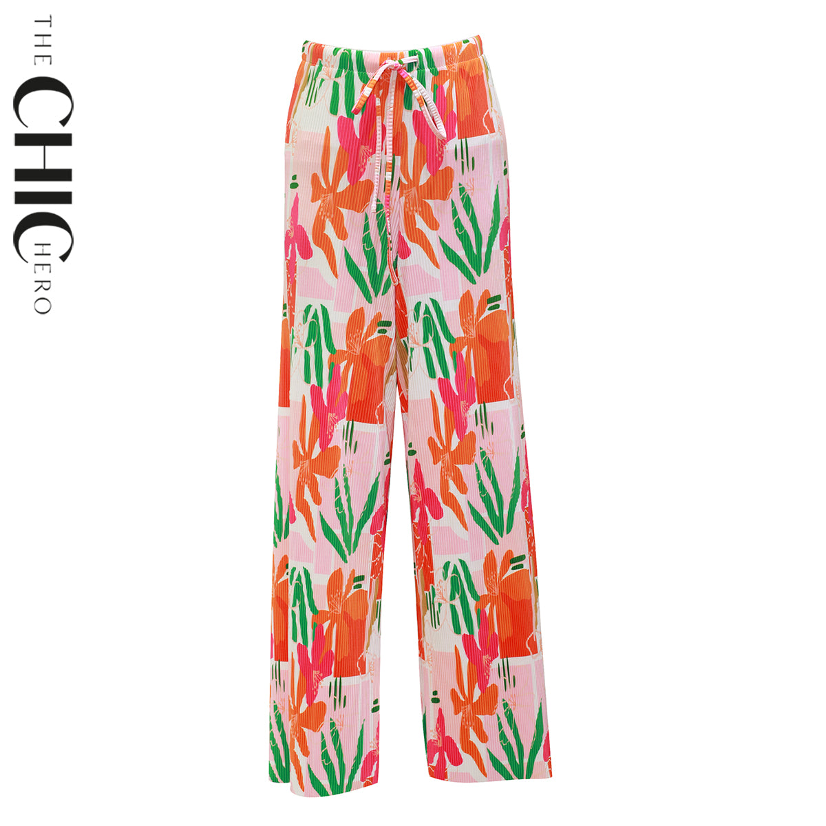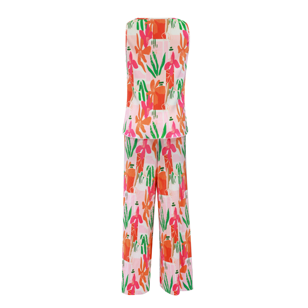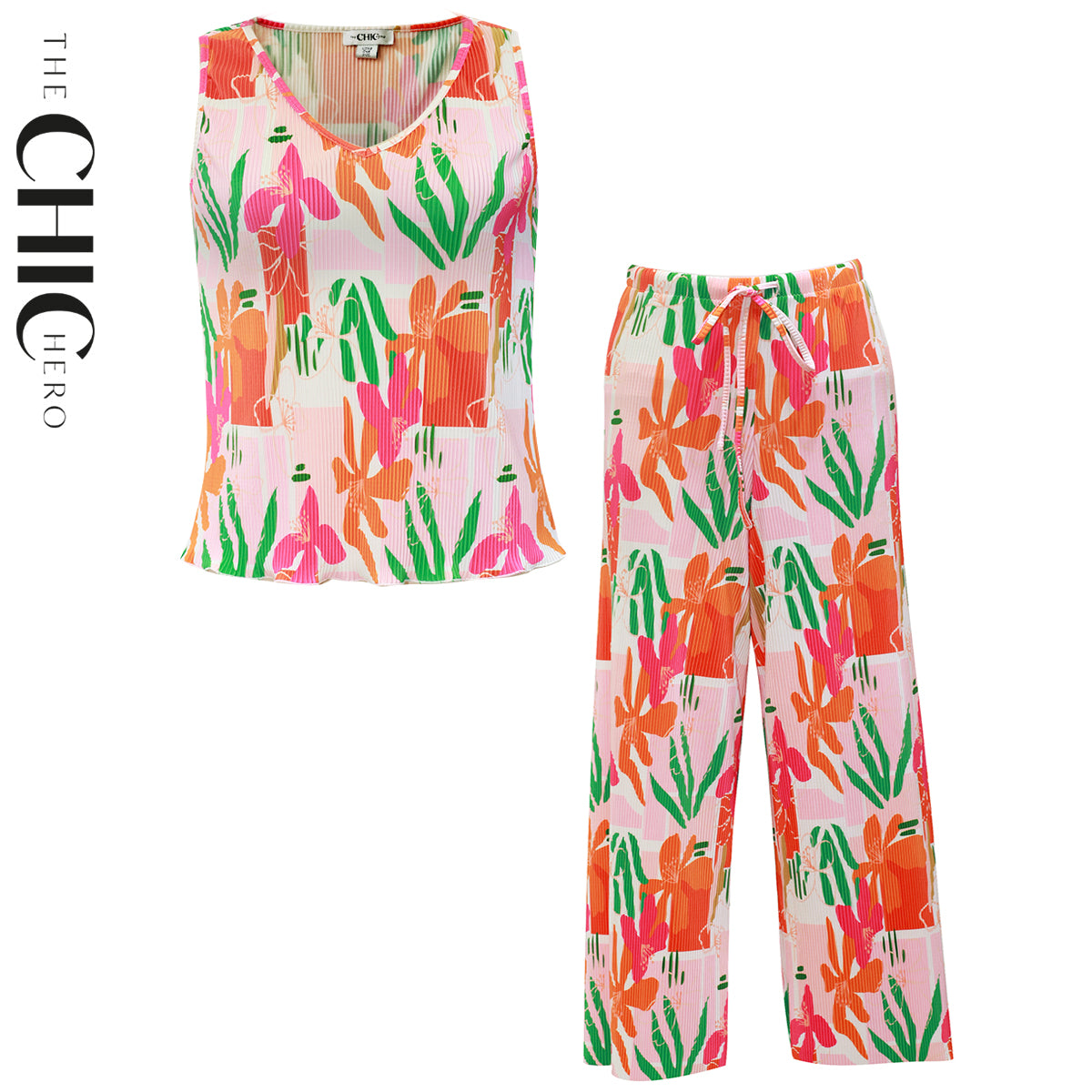 Featuring Tropical Floral Design V-Neck Vest Top & Pleated Pants