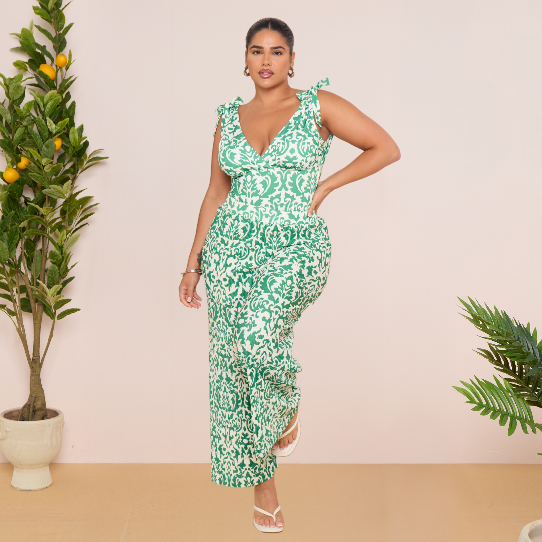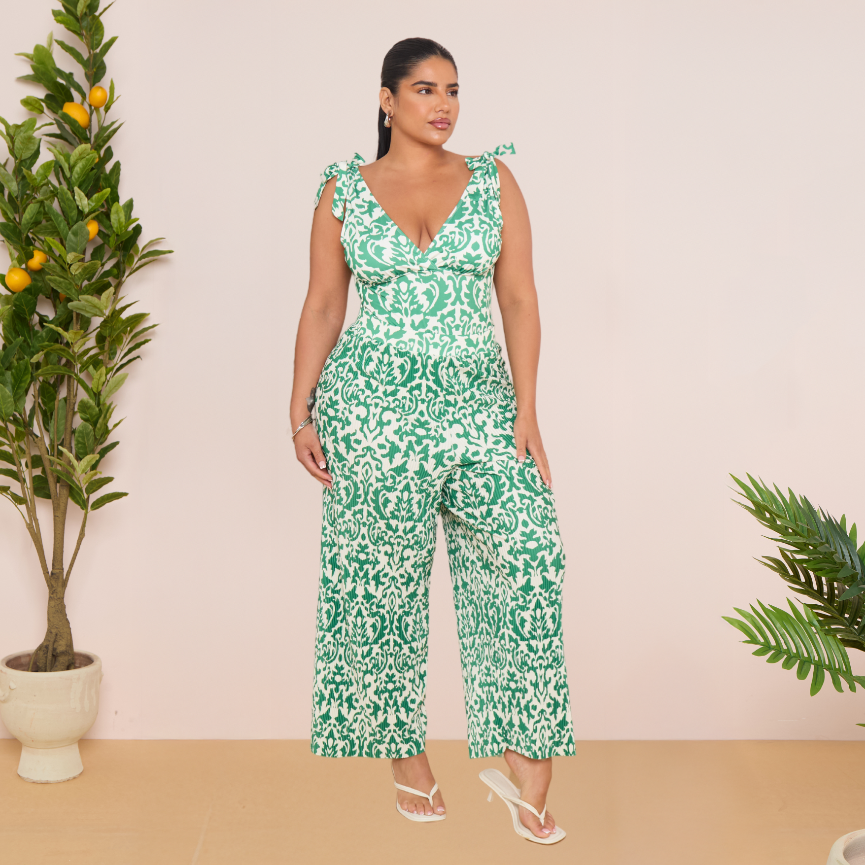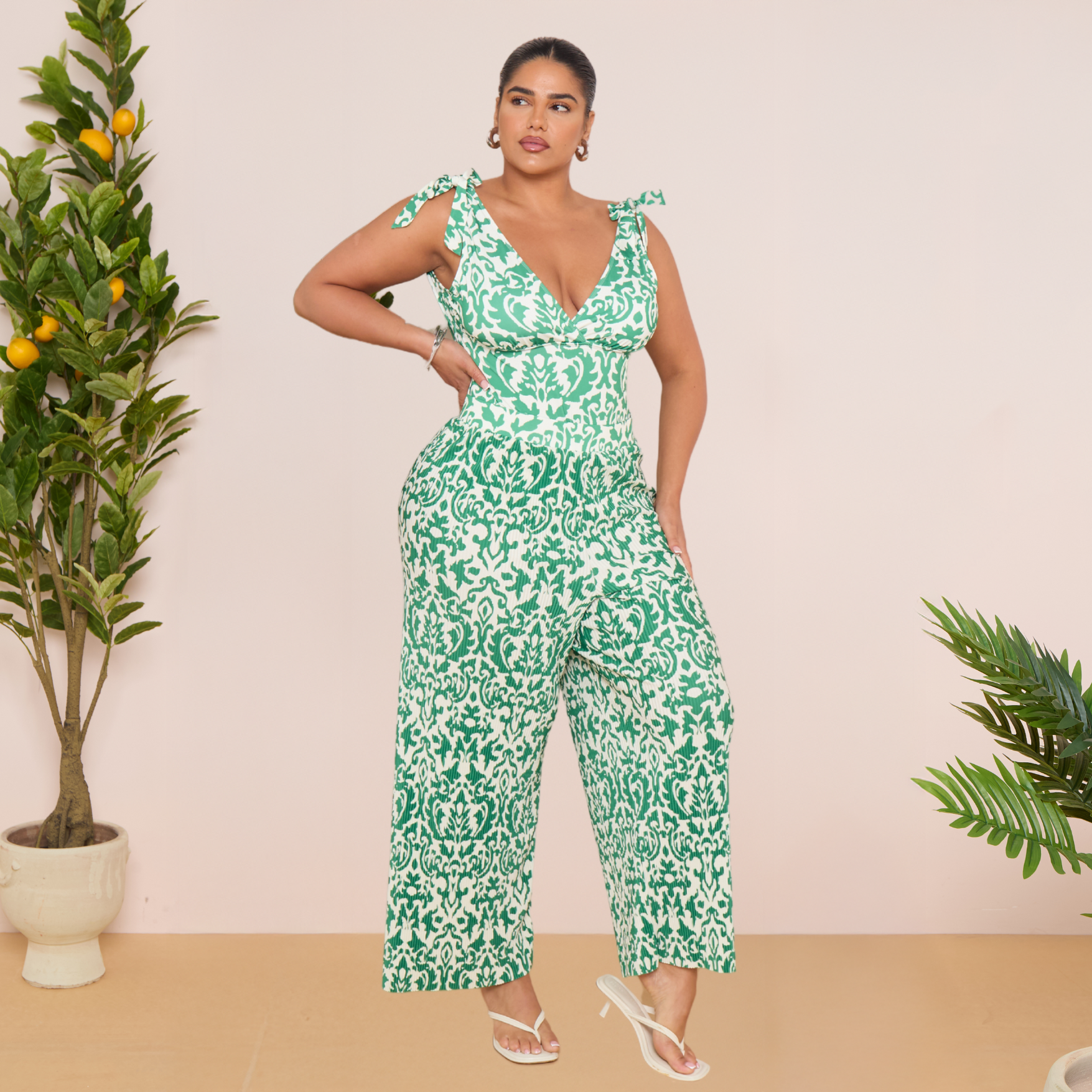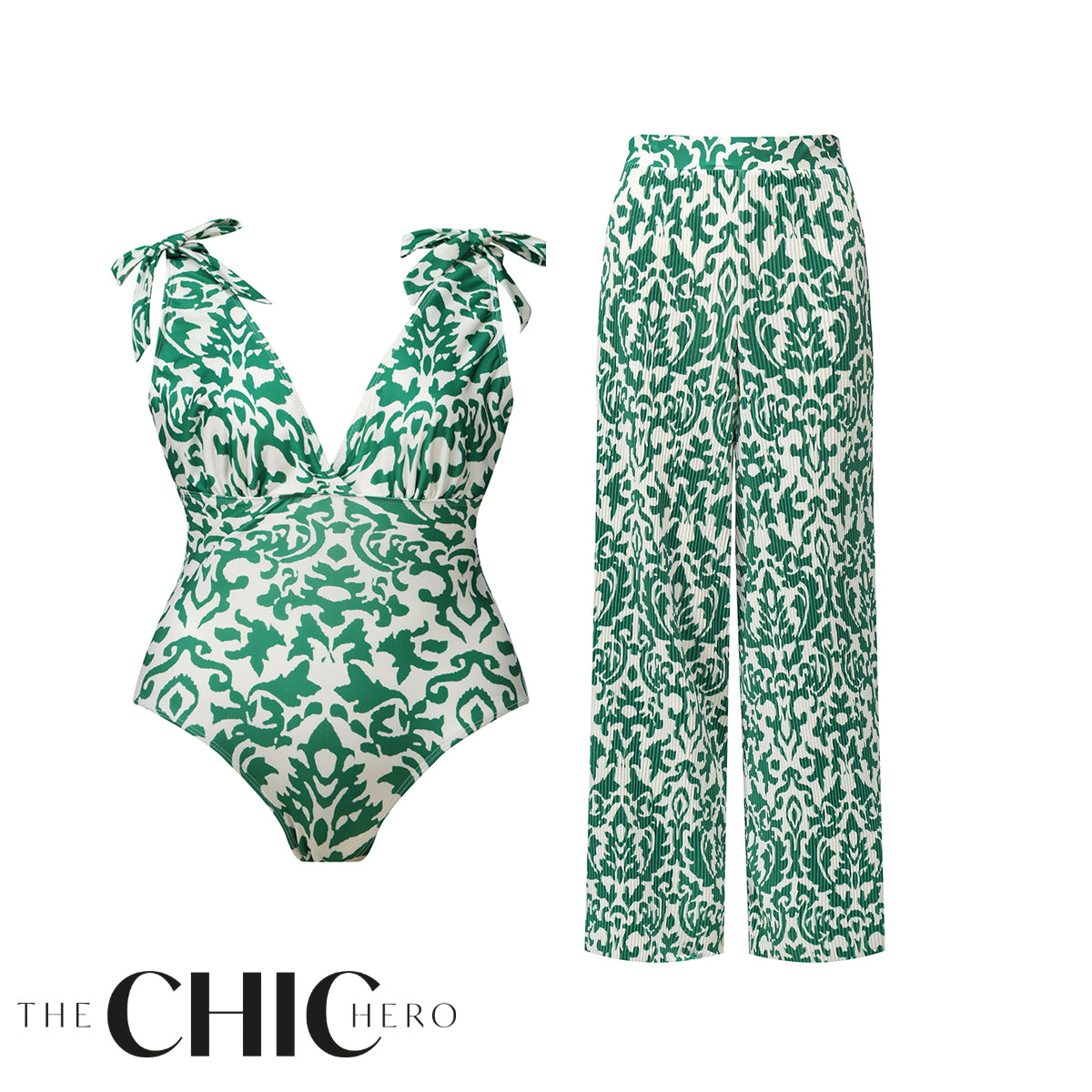 Green Boho Breeze Floral Tie-shoulder One Piece Swimsuit&Pants