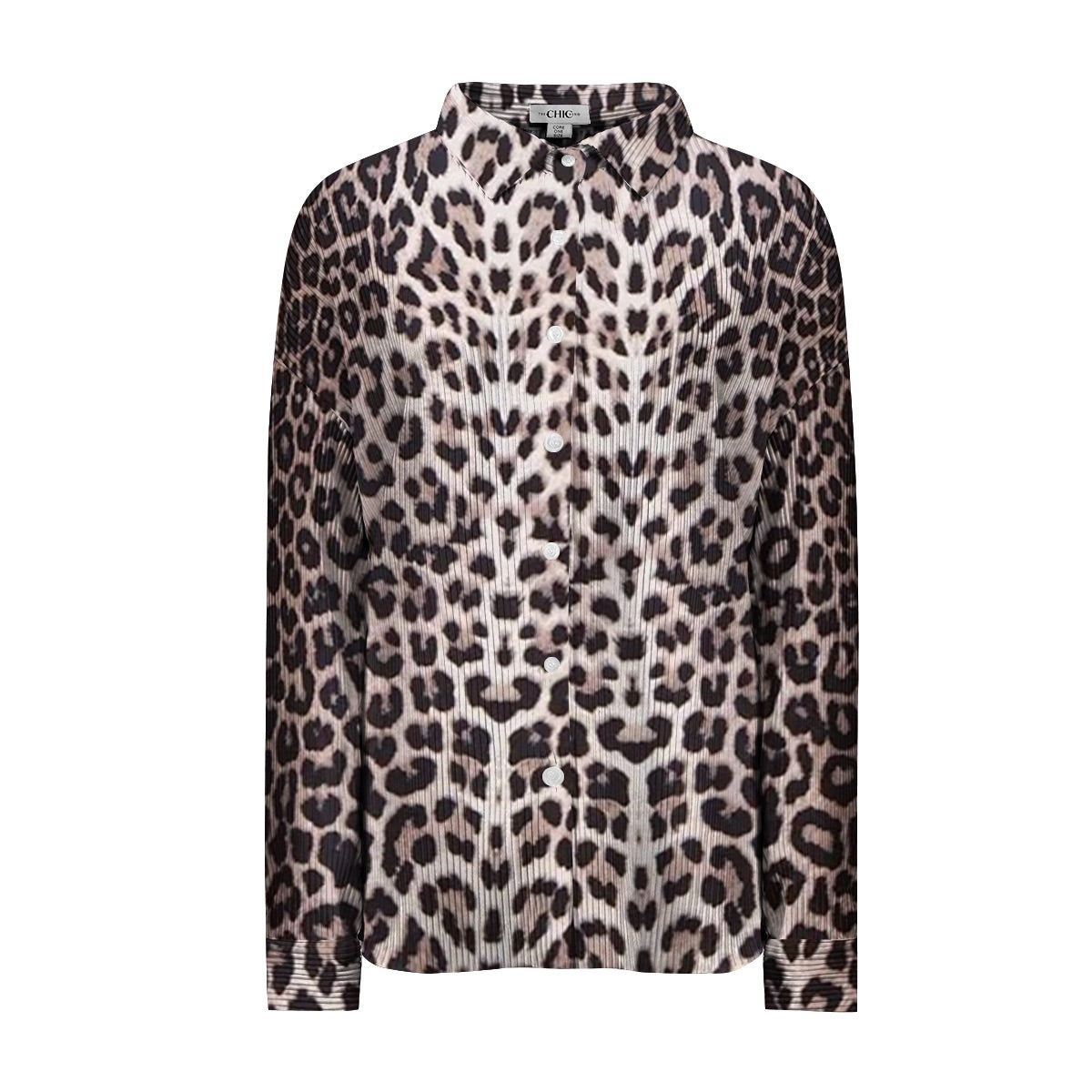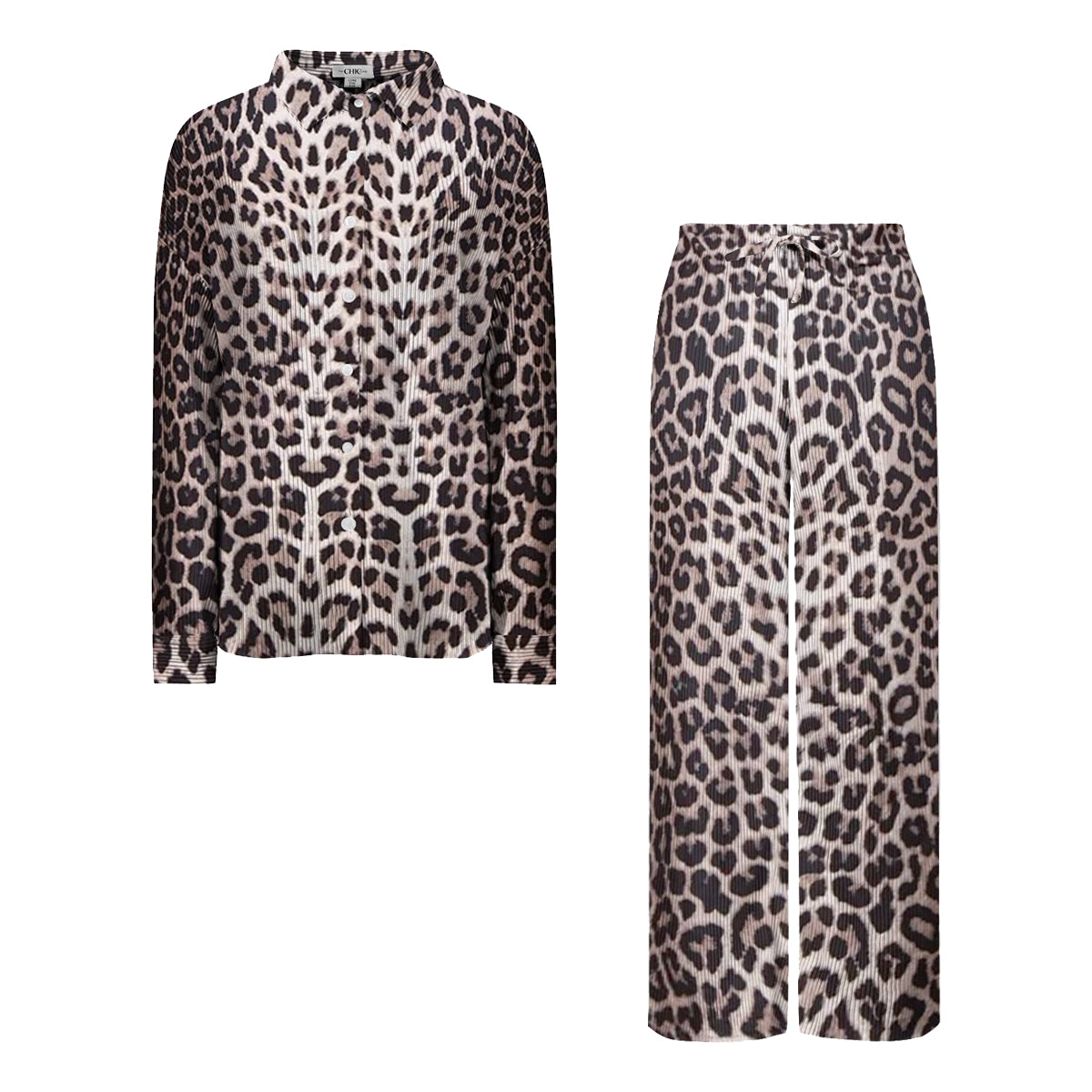 Leopard Print Button-Up Shirt & Wide Leg Pants Lounge Set