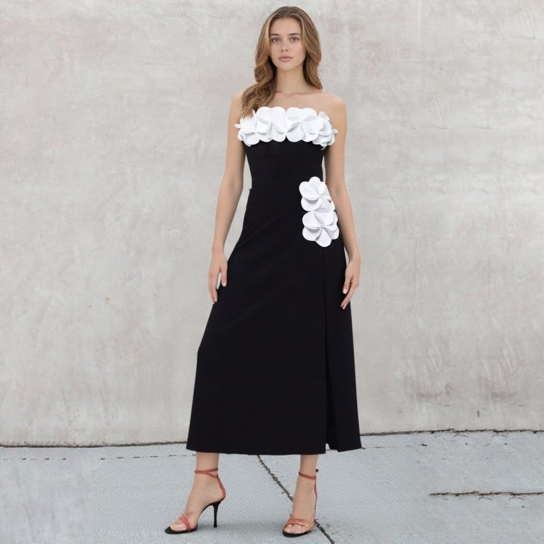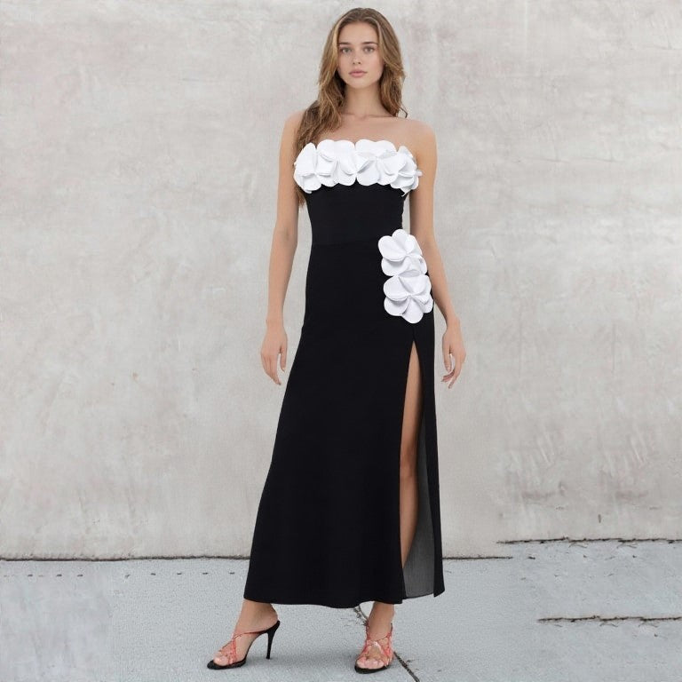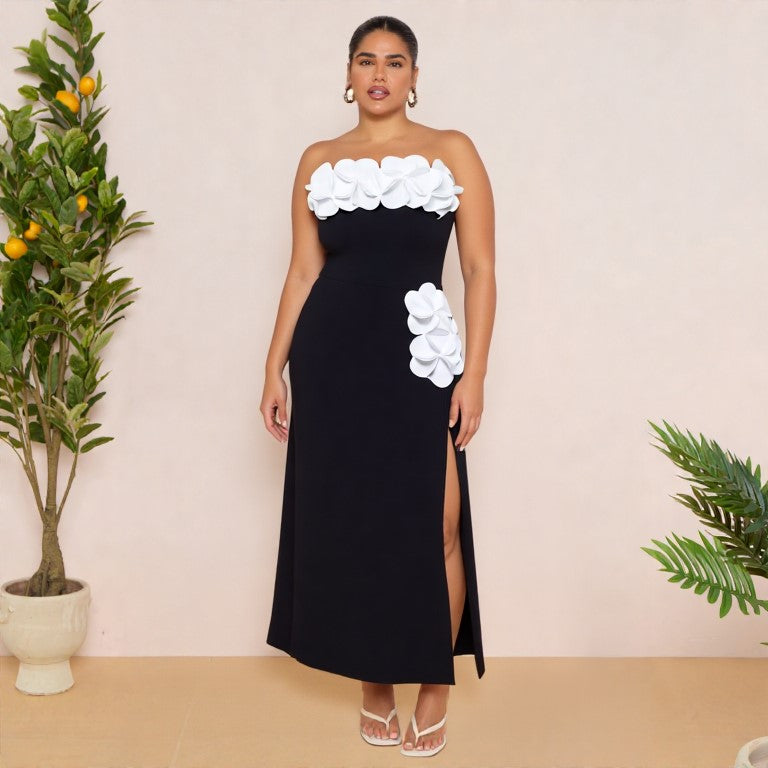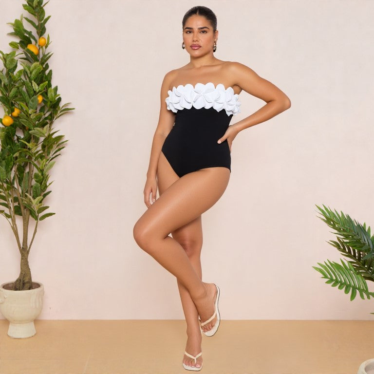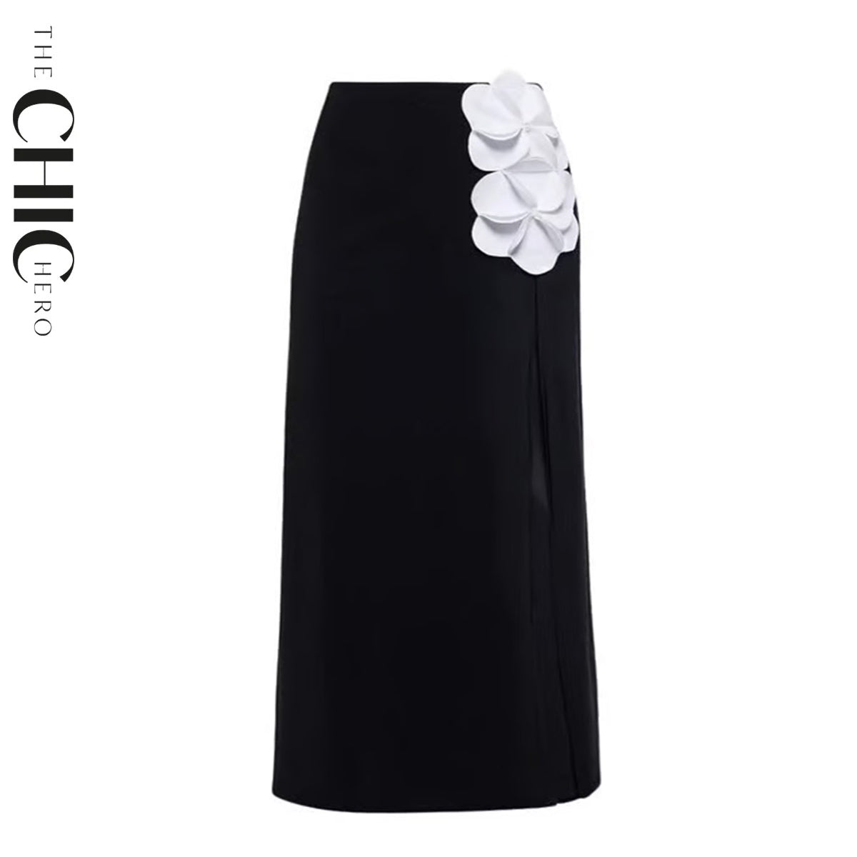 Vintage Black Floral Print One-Piece Swimsuit&Skirt