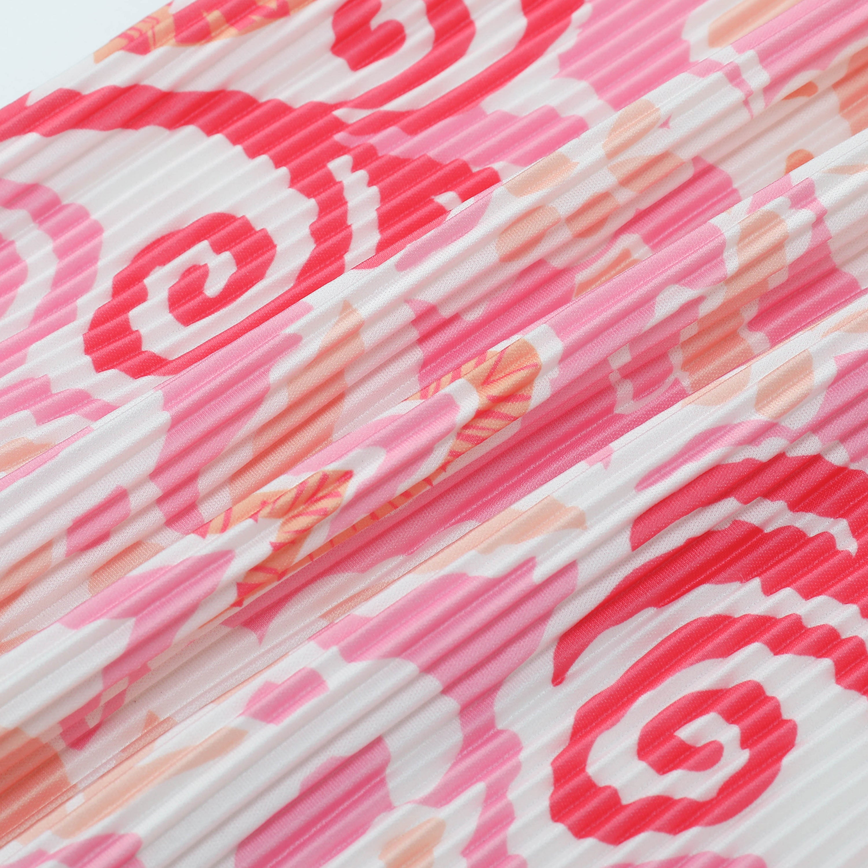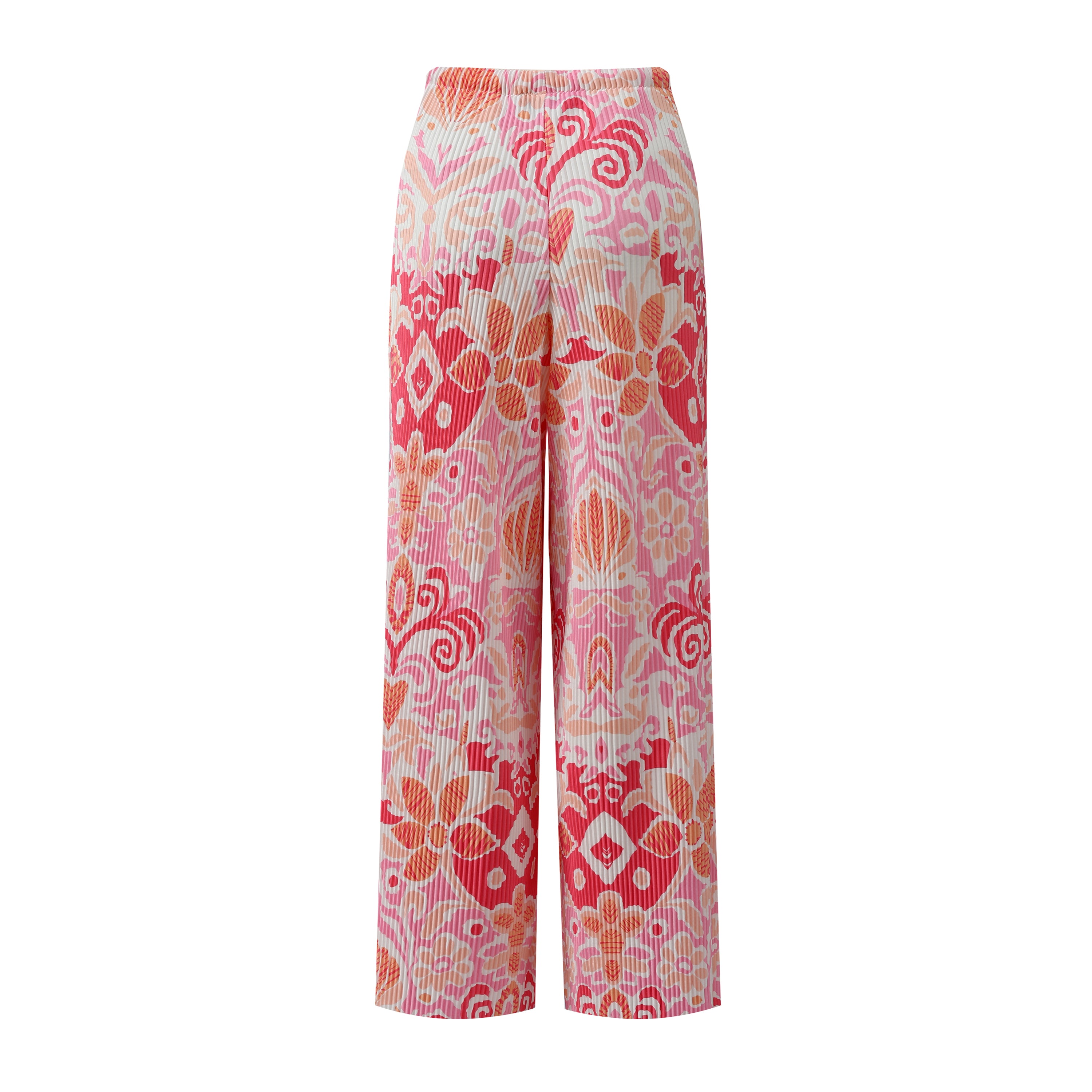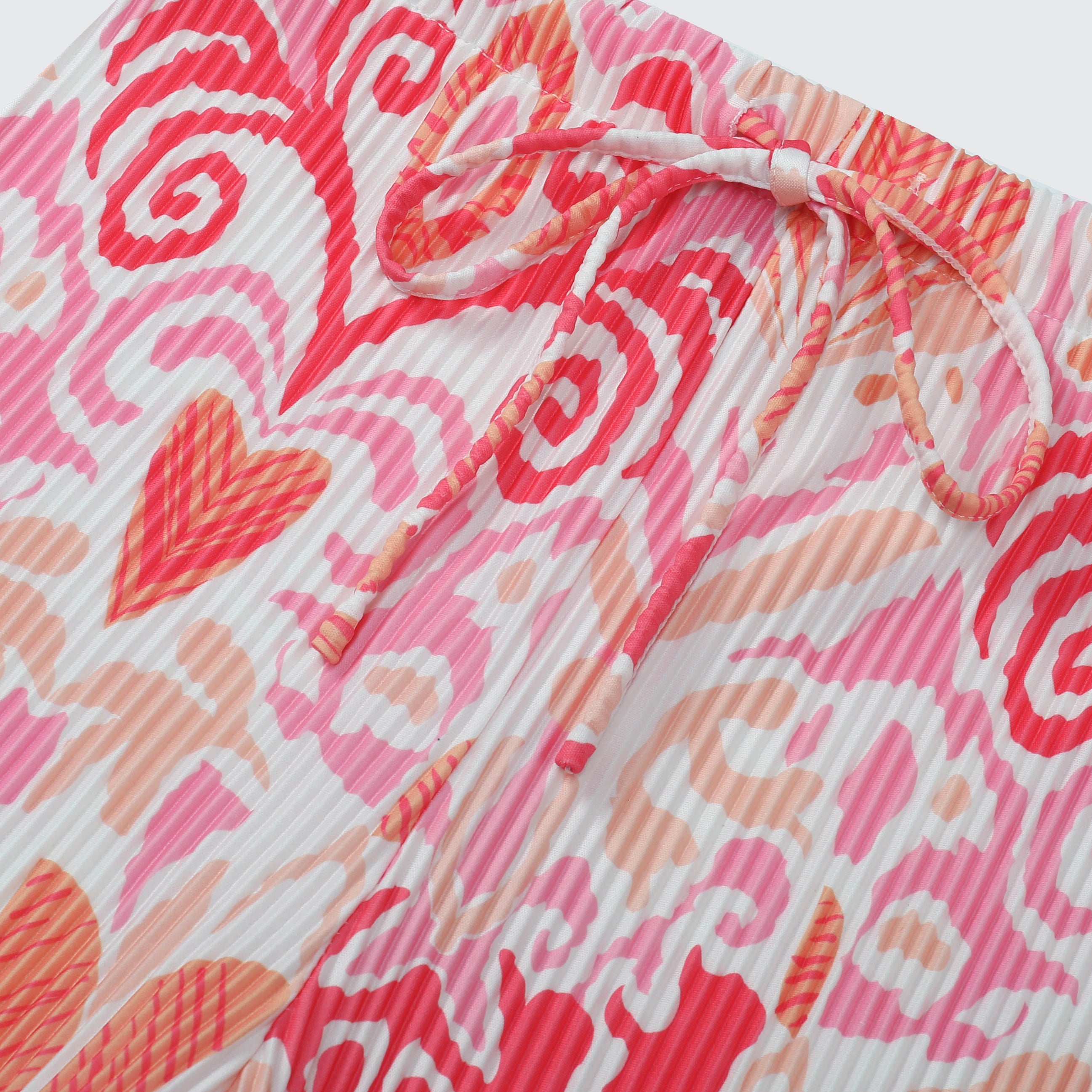 Pink Abstract Prints High-Waisted Drawstring Trousers Pleated Pants