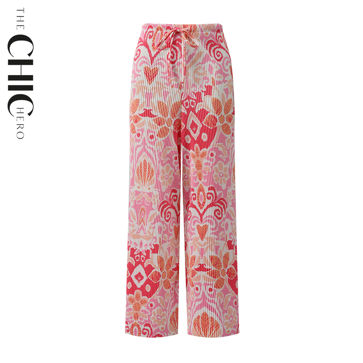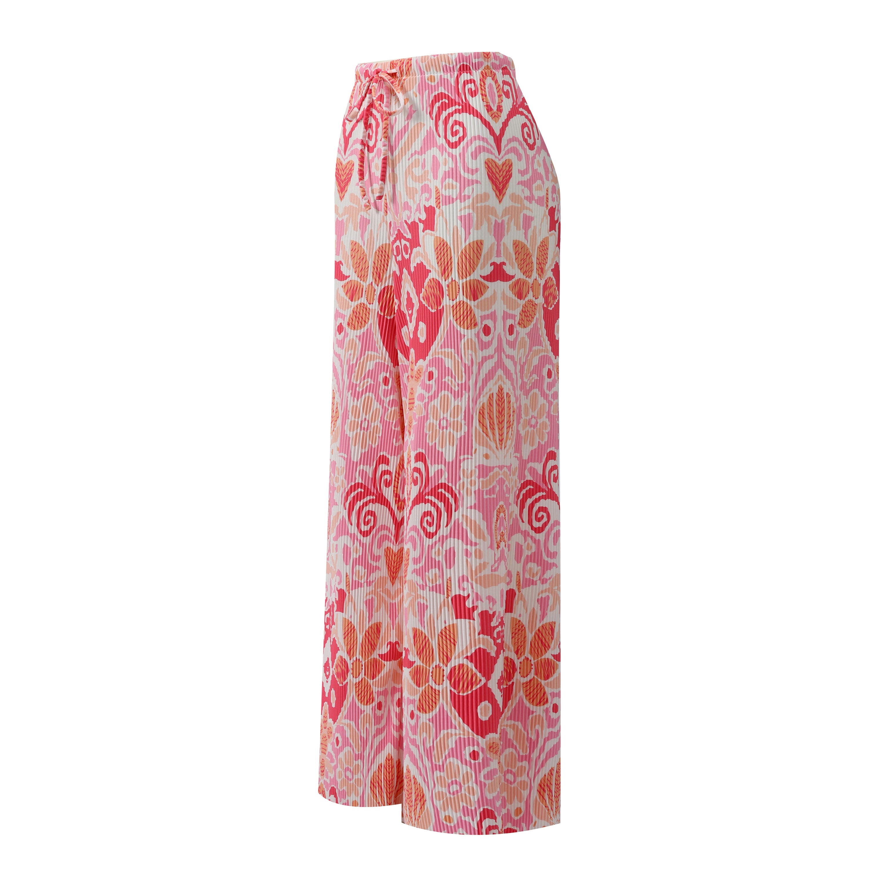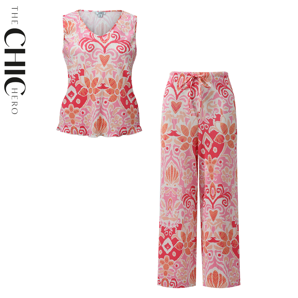 Pink Heart Abstract Prints V-Neck Vest Top & Pleated Pants