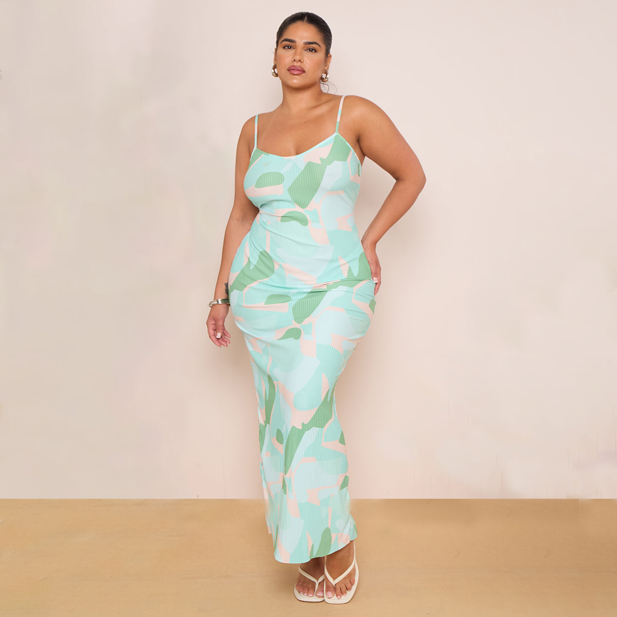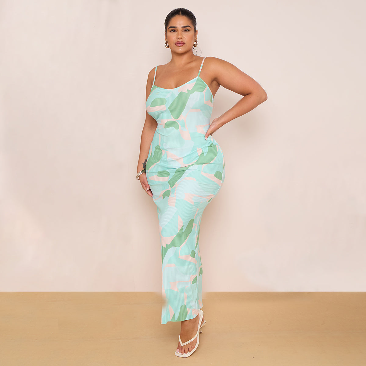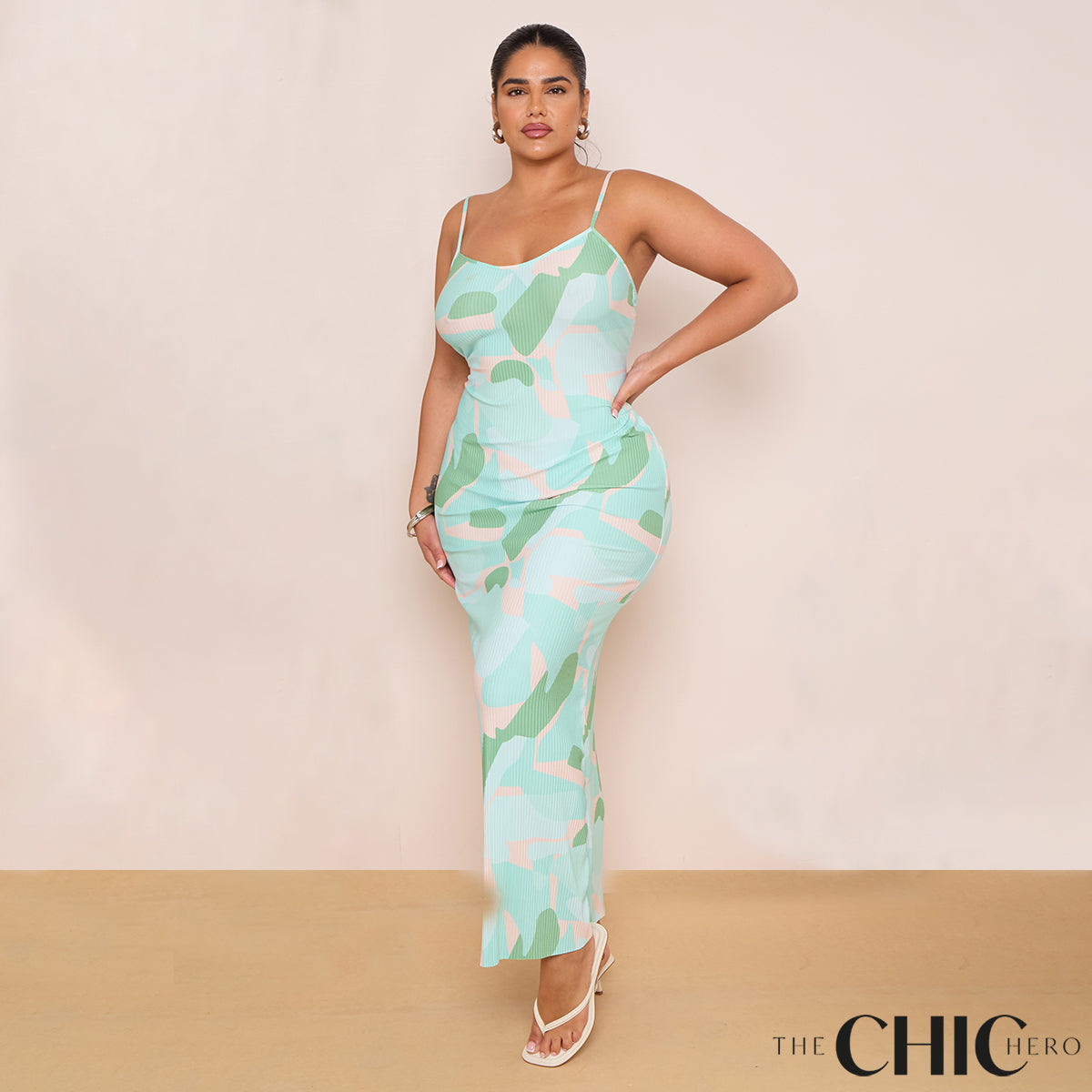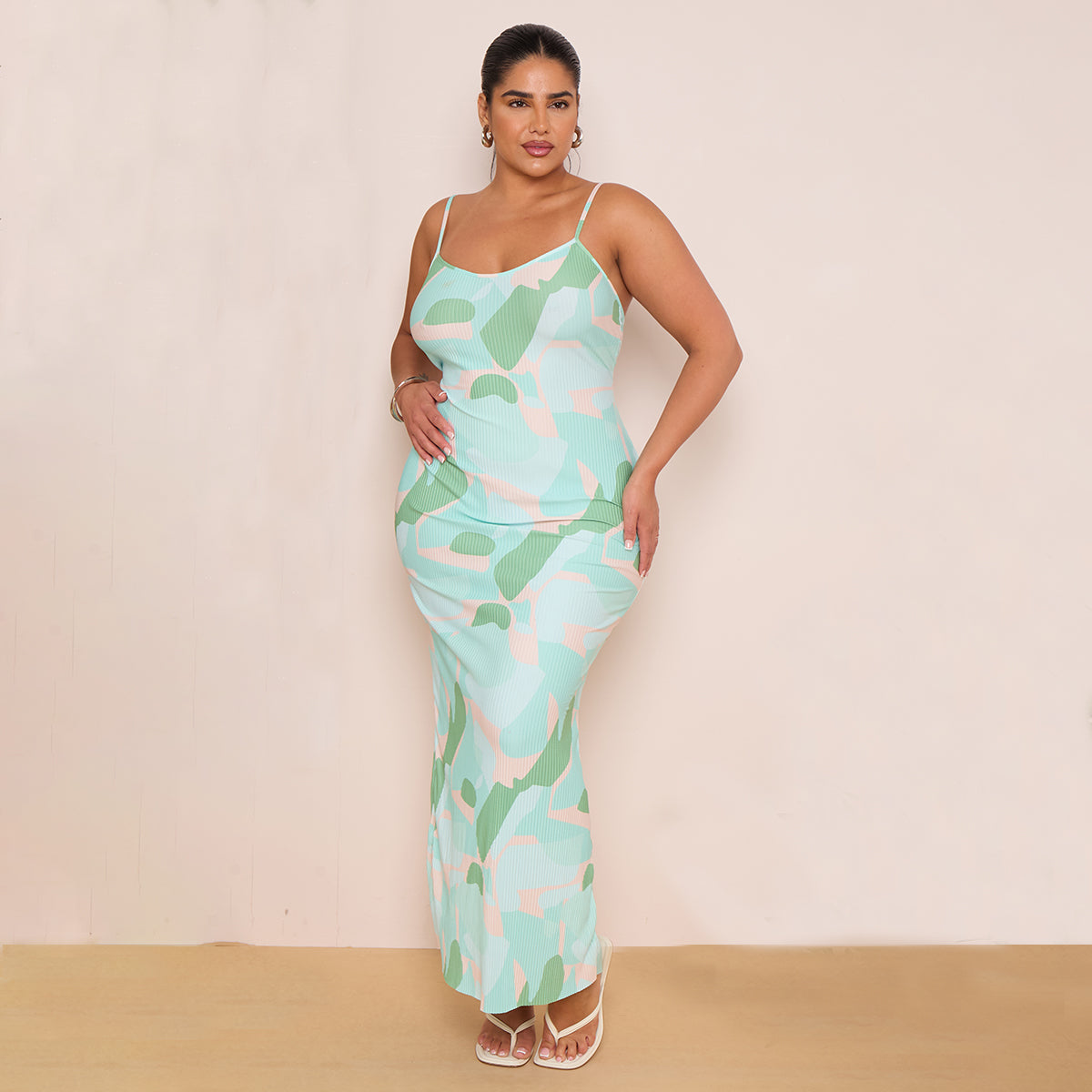 Plus Green Tie-dye Printed Plisse Cowl Neck Bodycon Dress