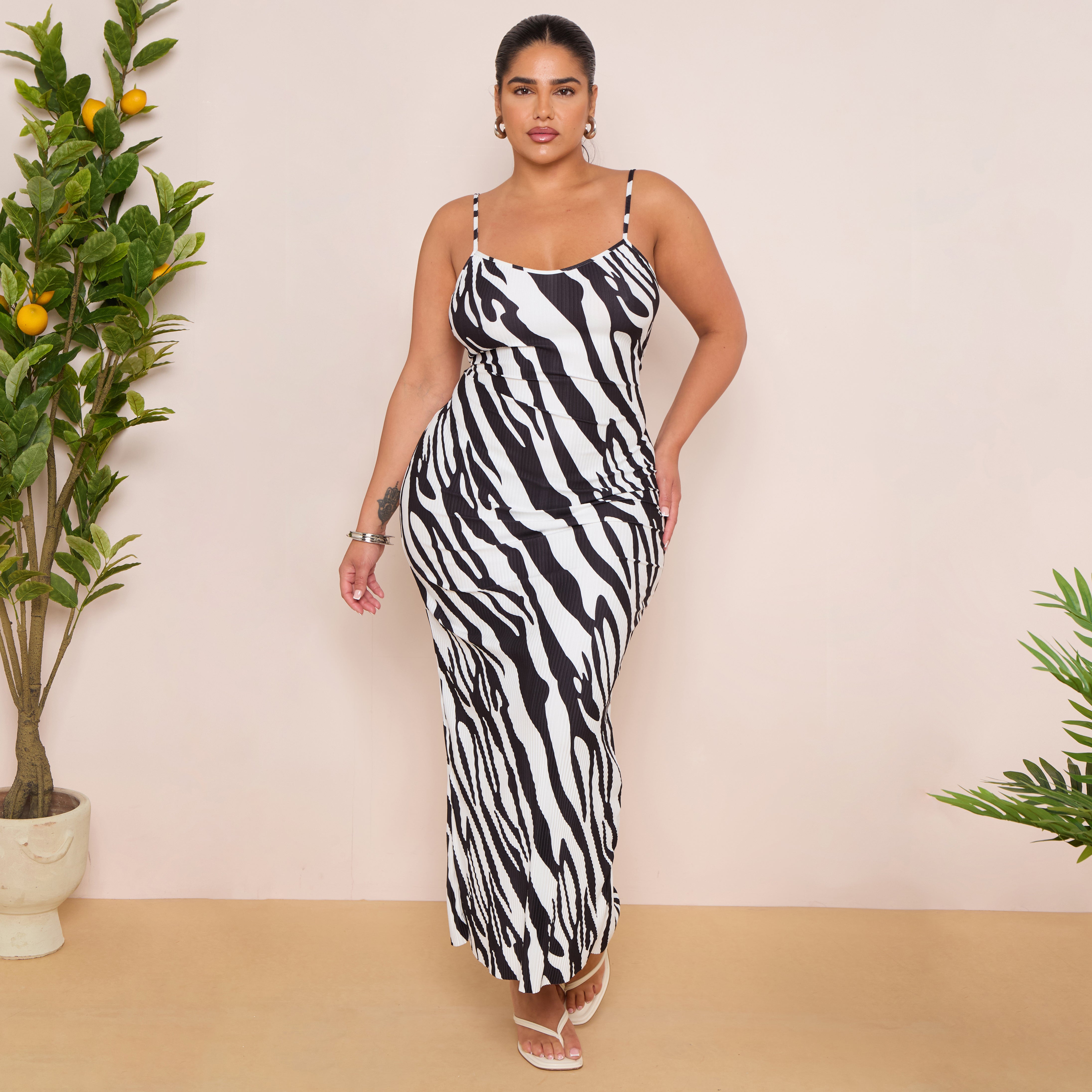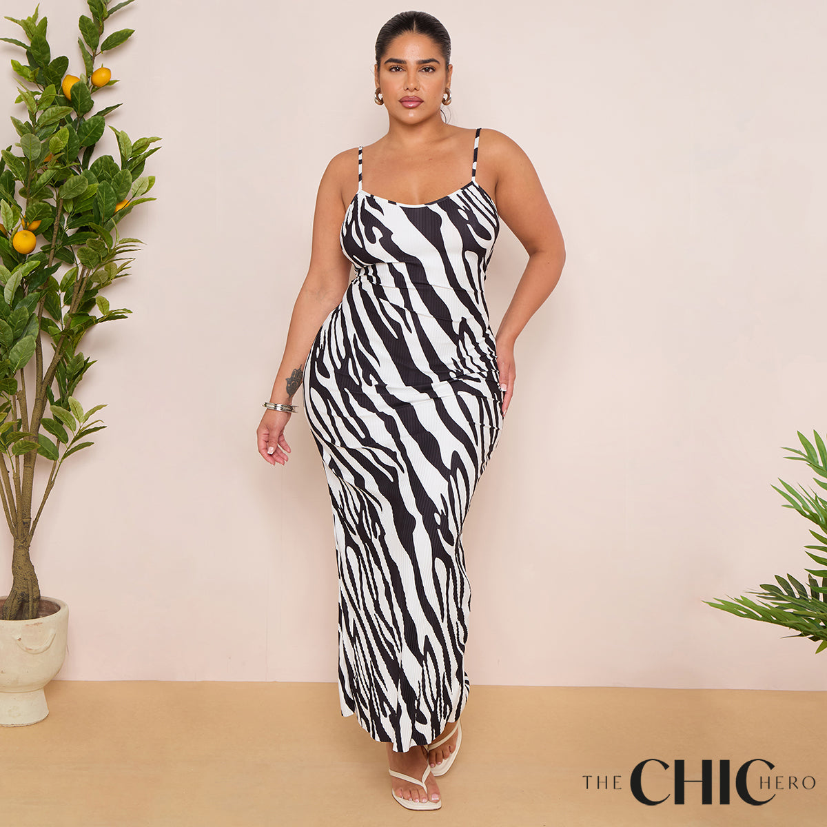Plus Printed Striped Zebra Cowl Neck Bodycon Dress