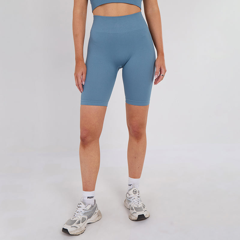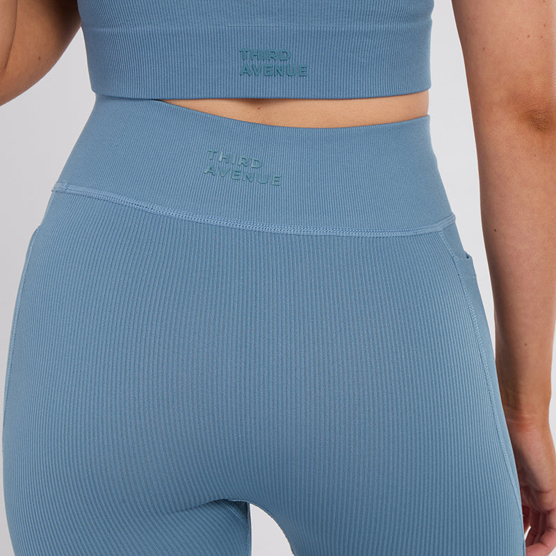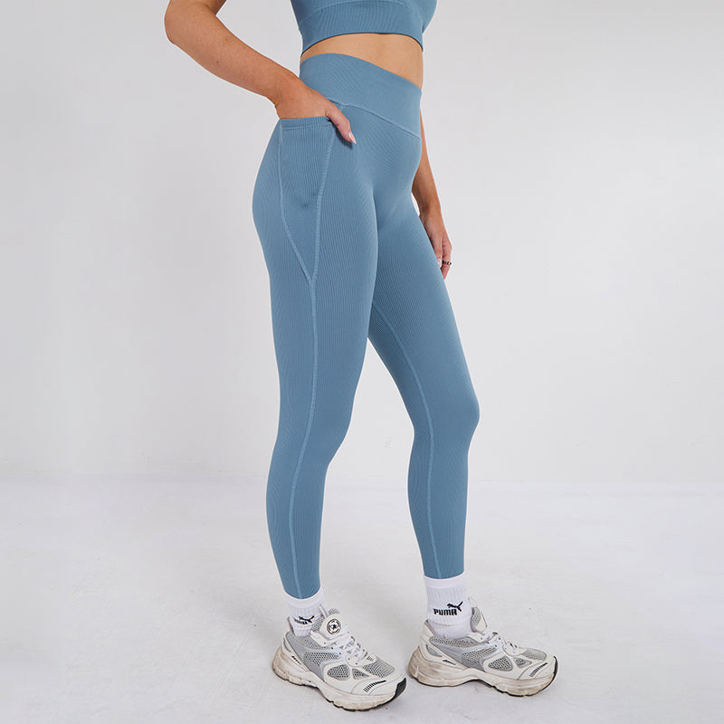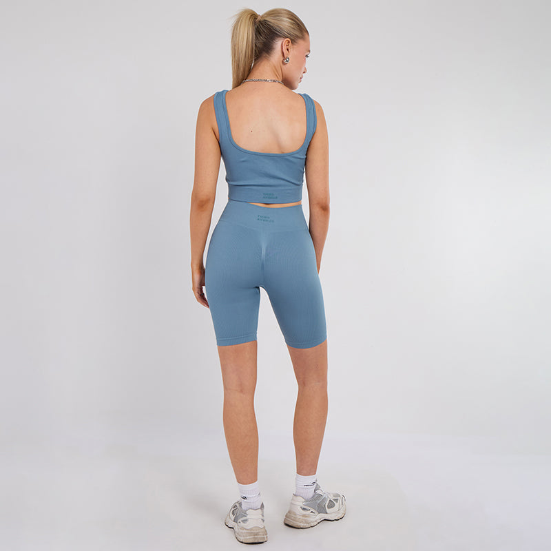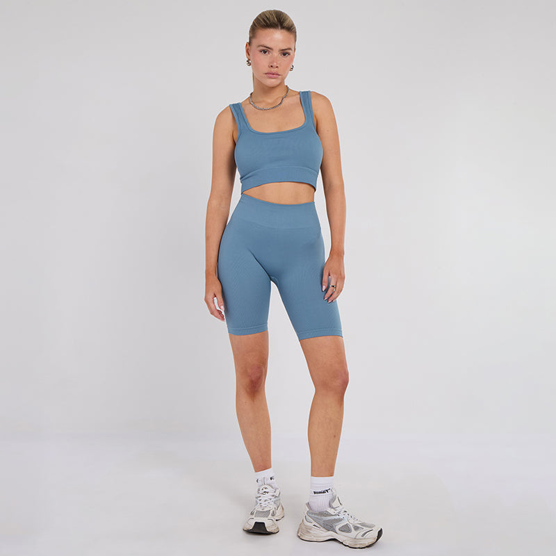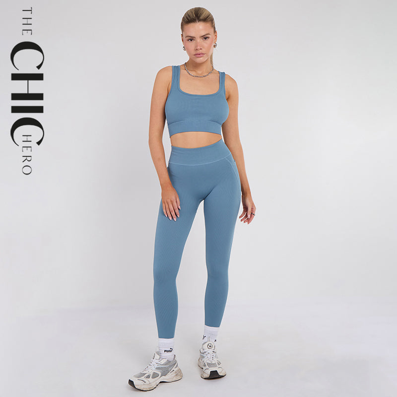 Stretch Blue Workout Outfit Seamless Sports Bra & High-Waist Leggings Set