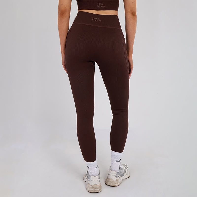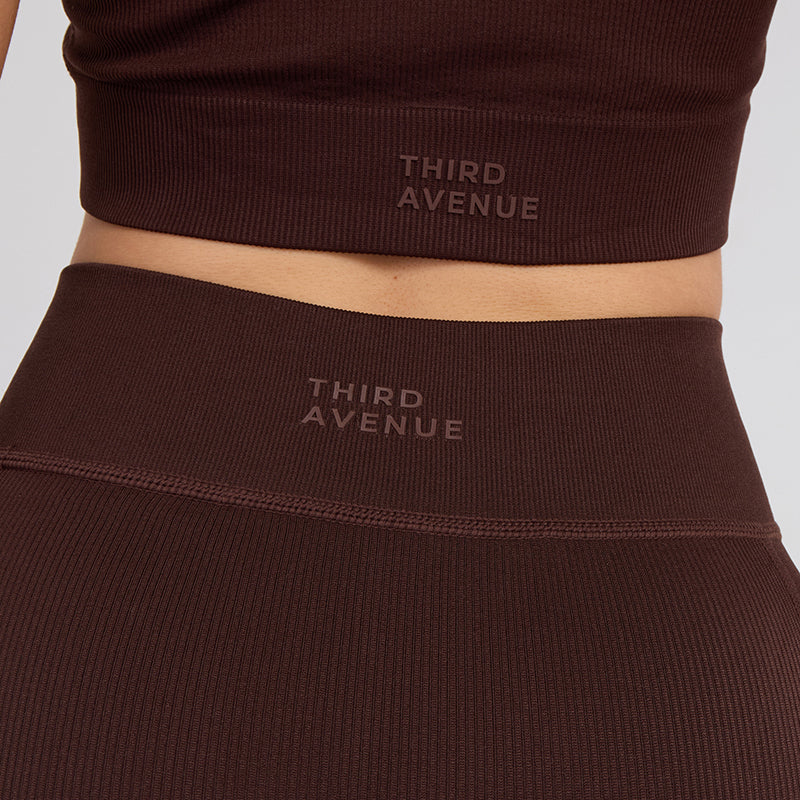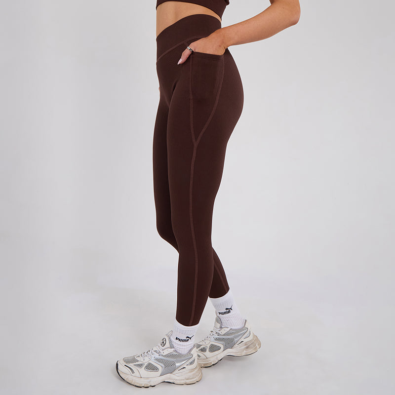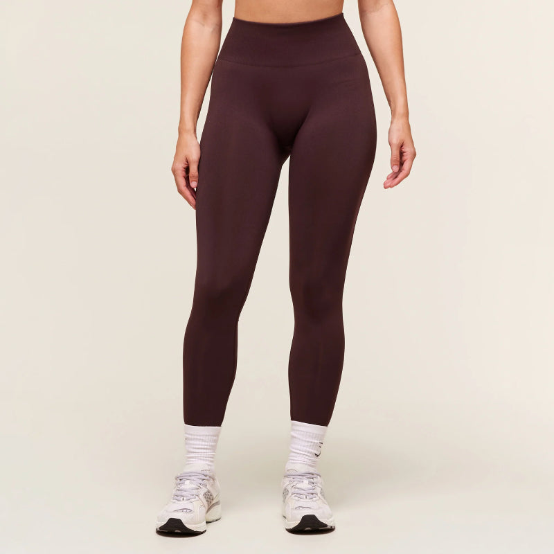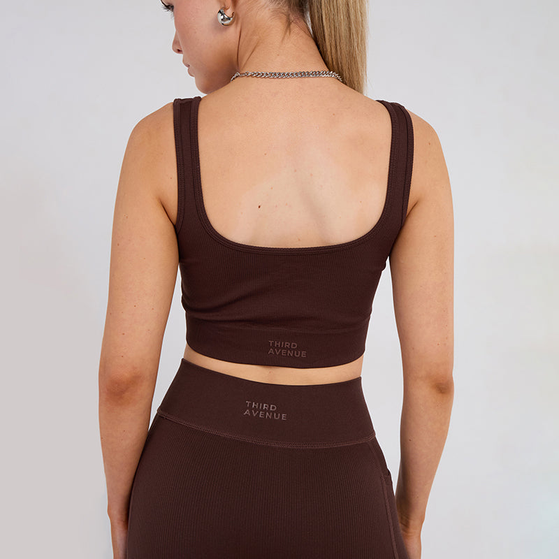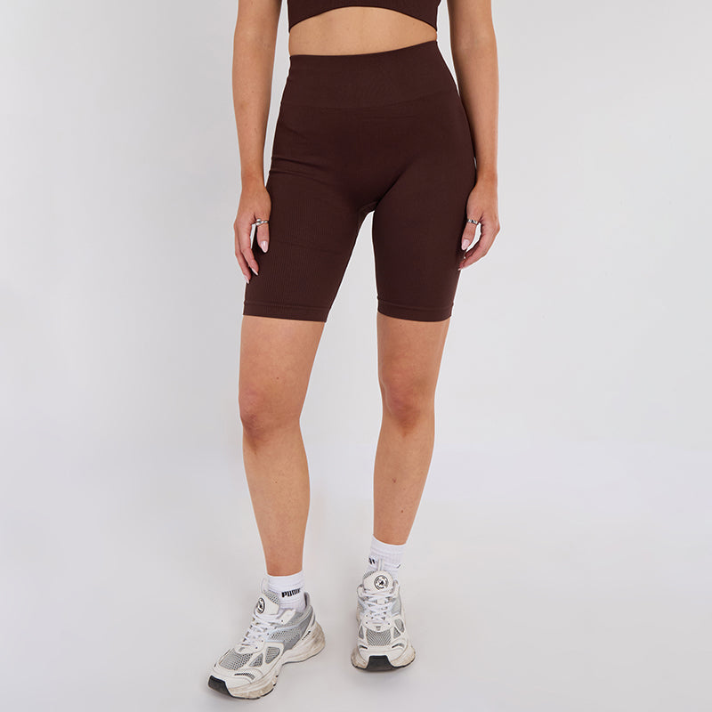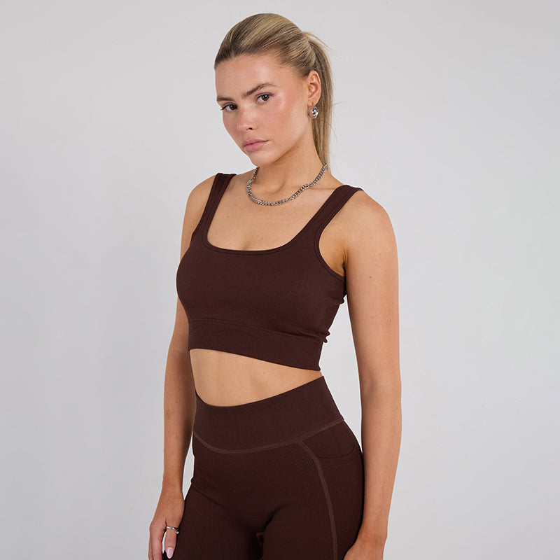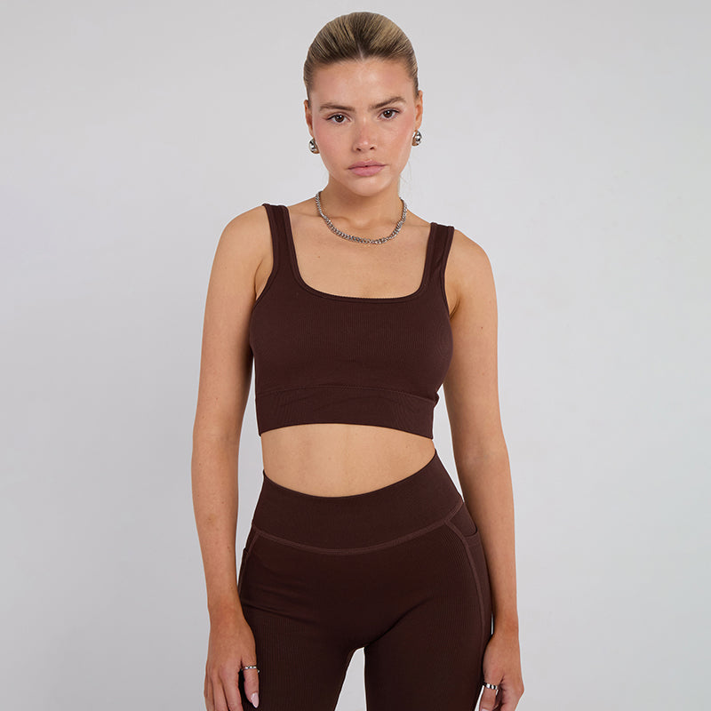 Stretch Coffee Brown Workout Outfit Seamless Sports Bra & High-Waist Leggings Set