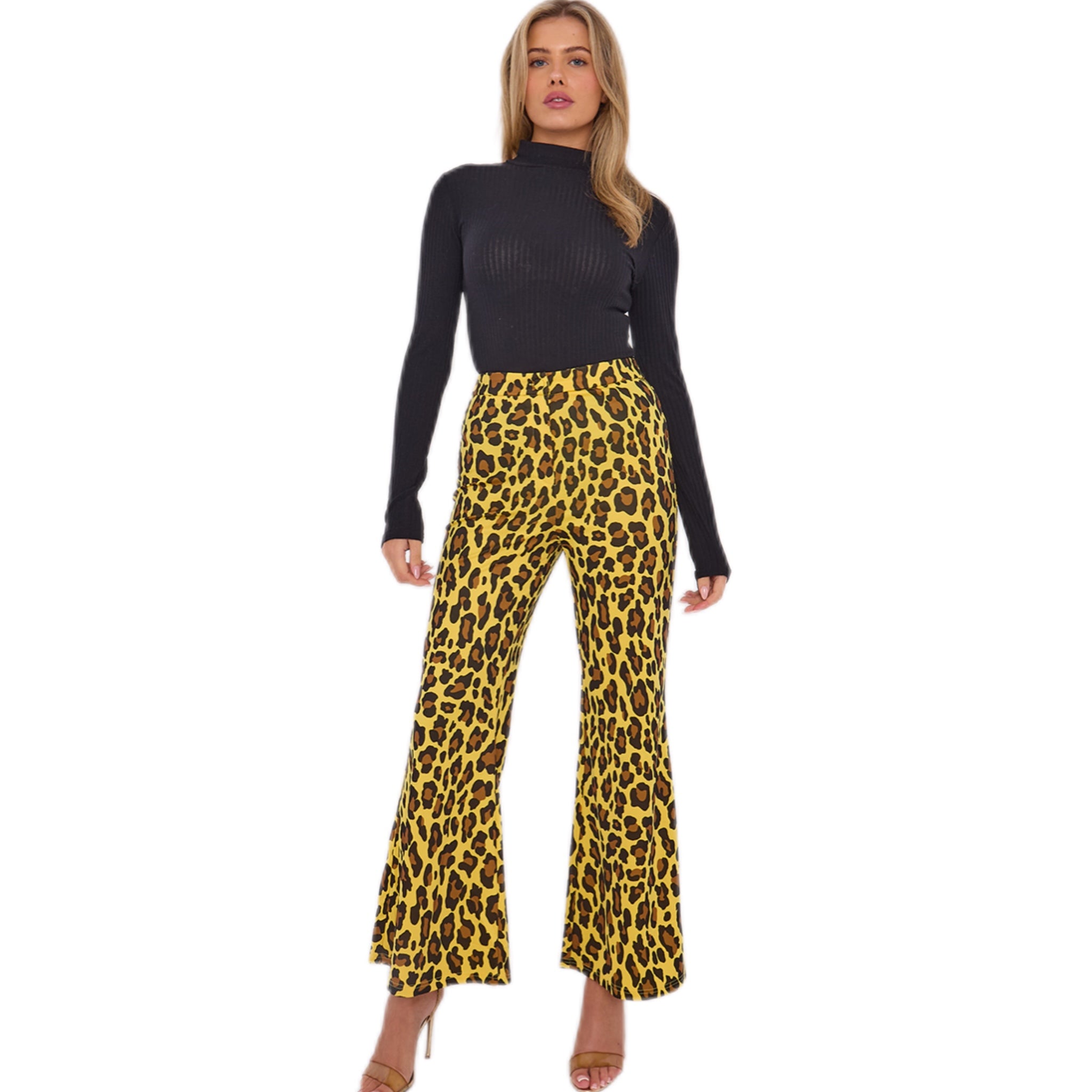 Yellow Leopard Print Abstract Print Flared High-Waist Slim-Fit Pants